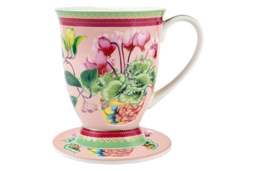Кружка, 300 мл, на подставке, фарфор P, розовая, Цикламены, Jardin информация: