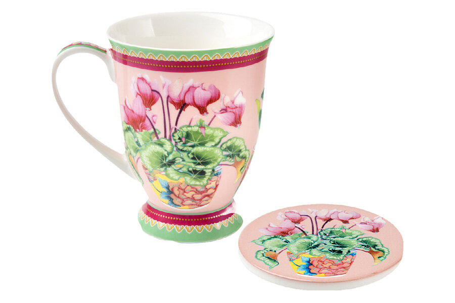 10 цен на Кружка, 300 мл, на подставке, фарфор P, розовая, Цикламены, Jardin