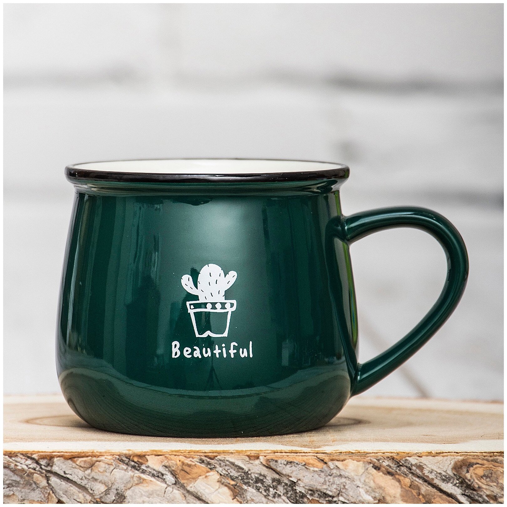 Отзывы на Кружка керамическая Семейная "Кактус Beautiful" 280 мл, зеленая, глянцевая, для чая/кофе, подарочная с принтом