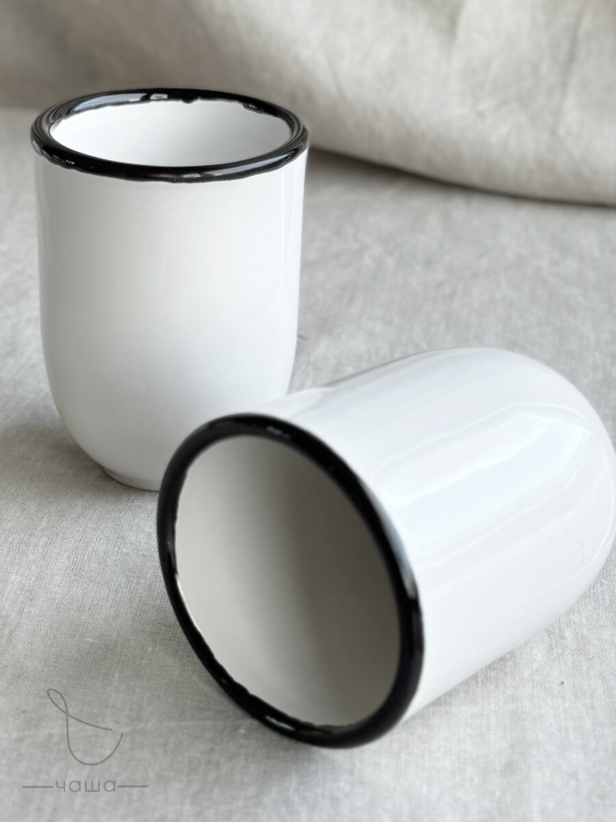 Кружка большая с черной каймой объемом 350 мл, фарфор Chasha 544 ₽
