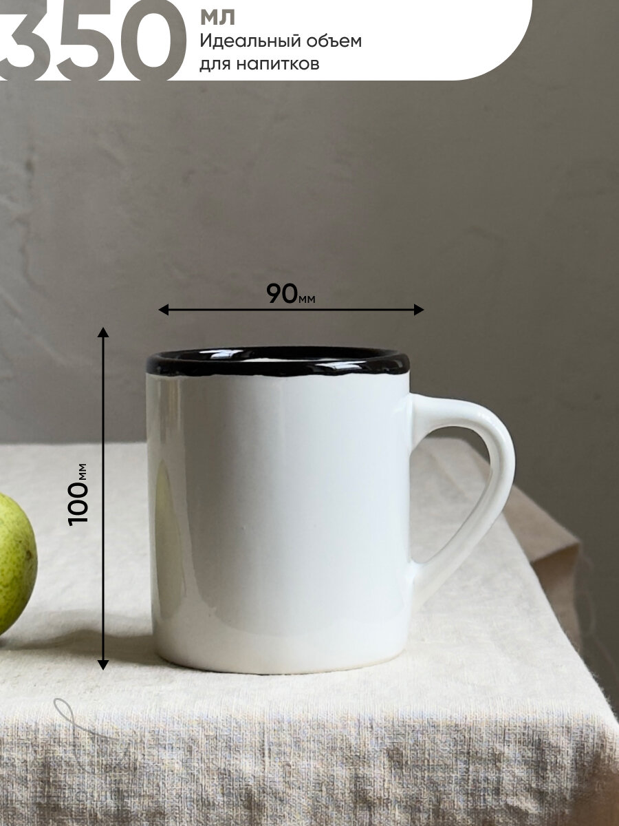 10 цен на Кружка большая с черной каймой объемом 350 мл, фарфор Chasha
