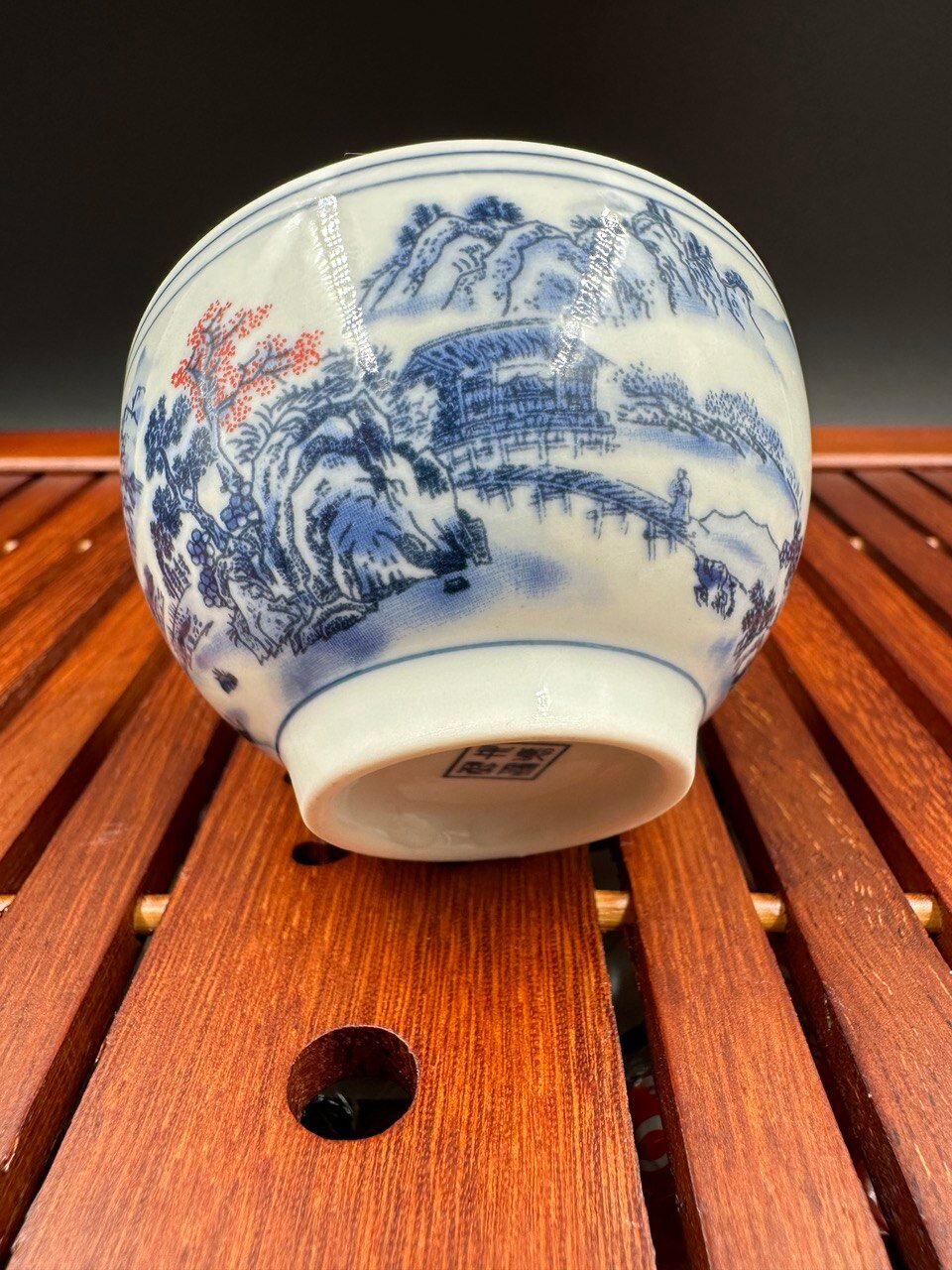 10 цен на Пиала фарфоровая для чая "Винтажный пейзаж", серо-голубая, 60мл.
