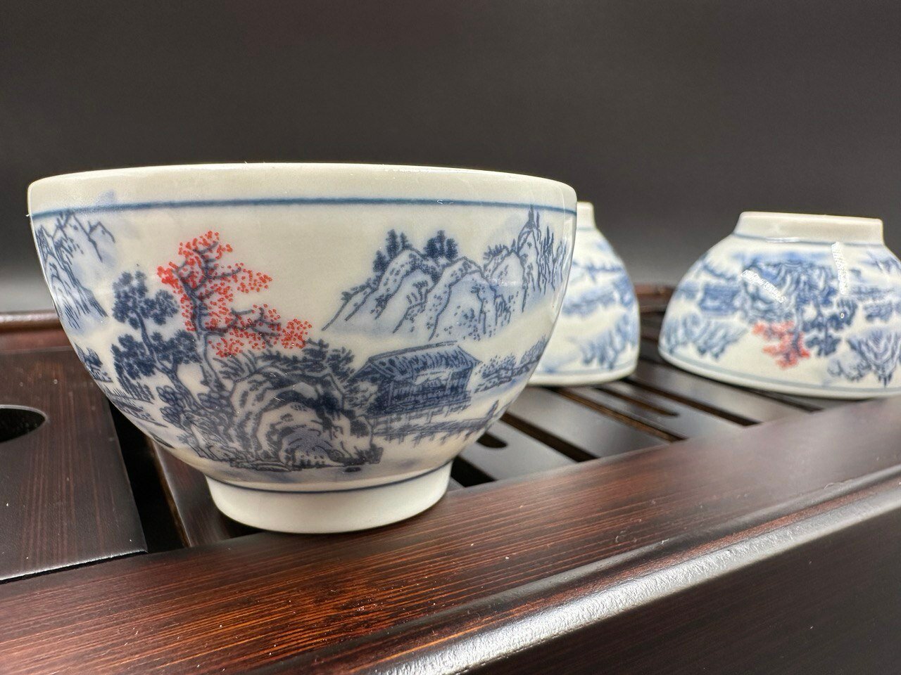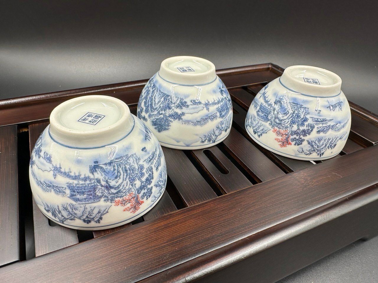 Отзывы на Набор из трёх пиал для китайского чая "Винтажный пейзаж", серо-голубая, 60мл.