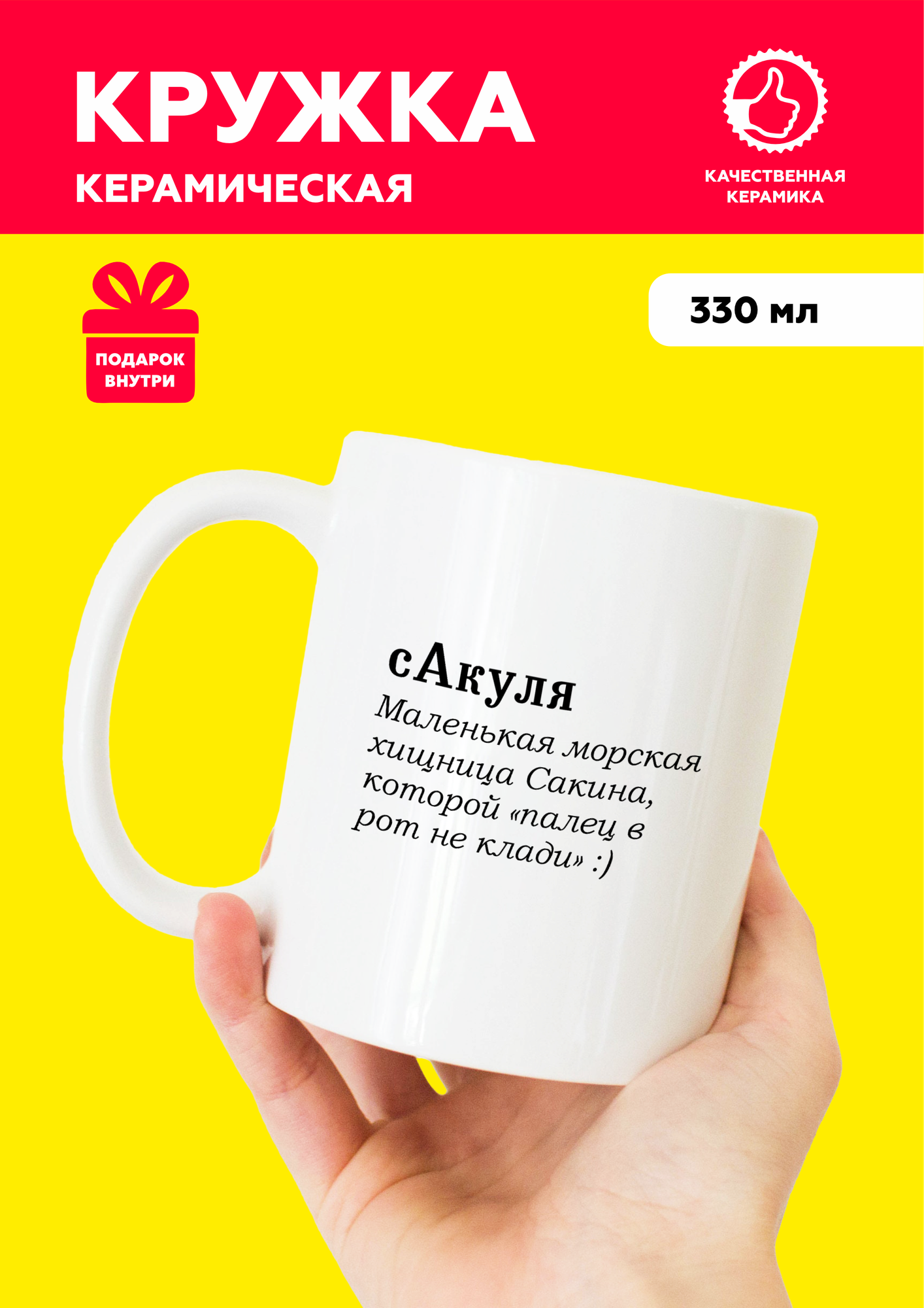 Белая именная кружка из керамики с приколом и мемом для Сакины "сАкуля" с надписью от Mug IrbisPrint, для чая и кофе, 330 мл информация: