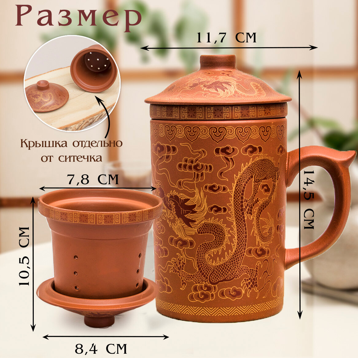 Кружка с ситечком Дракон N 2 (красный) чашка заварочная 300 мл Эврика, подарочная, символ года, для чайных церемоний 23 февраля, 8 марта 745 ₽