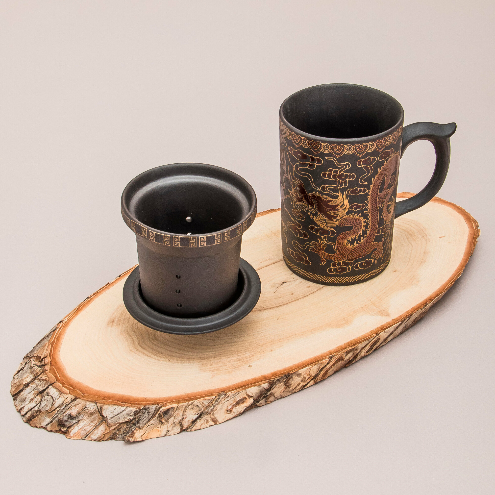 Кружка с ситечком Дракон N 6 (черный) чашка заварочная 300 мл Эврика, подарочная, символ года, для чайных церемоний 23 февраля, 8 марта 730 ₽