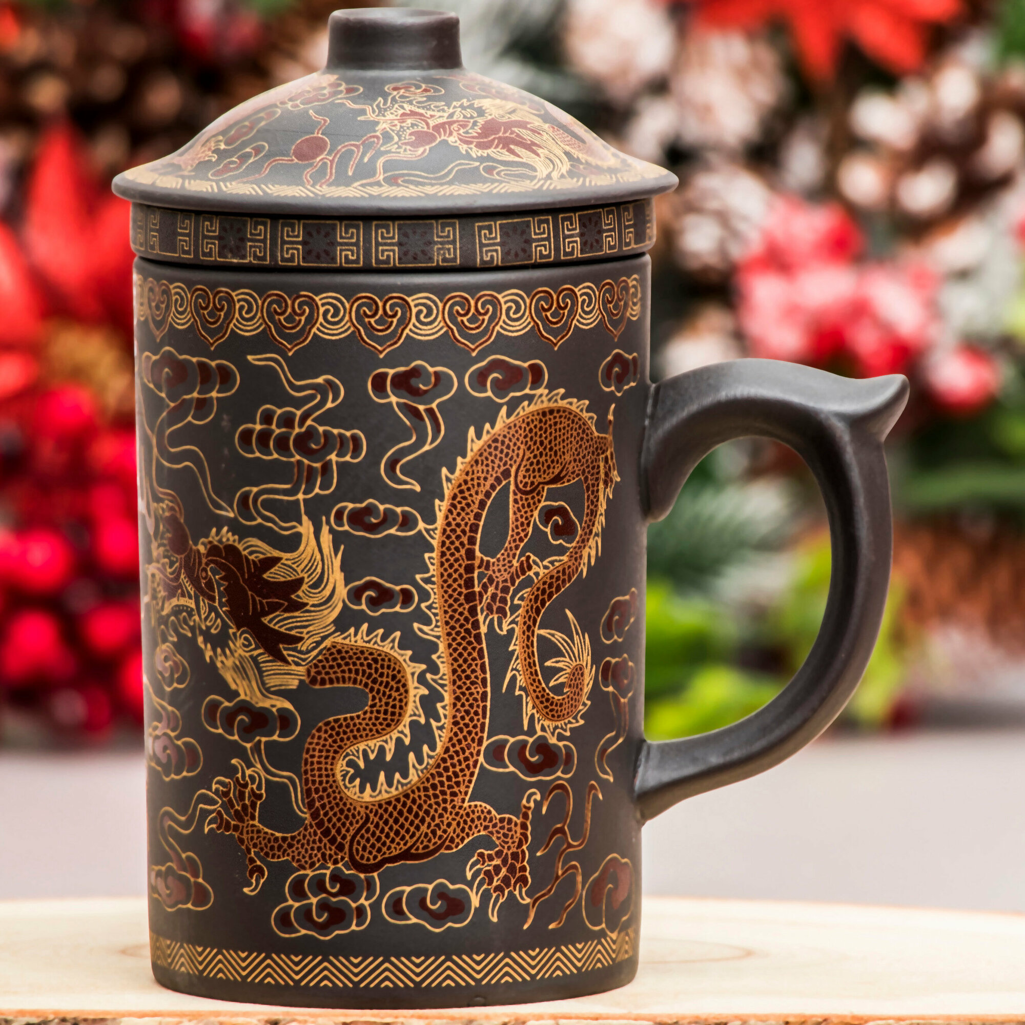 10 цен на Кружка из глины Золотой Дракон N 2 заварочная с ситечком 330 мл Эврика, подарочная, символ года 23 февраля, 8 марта