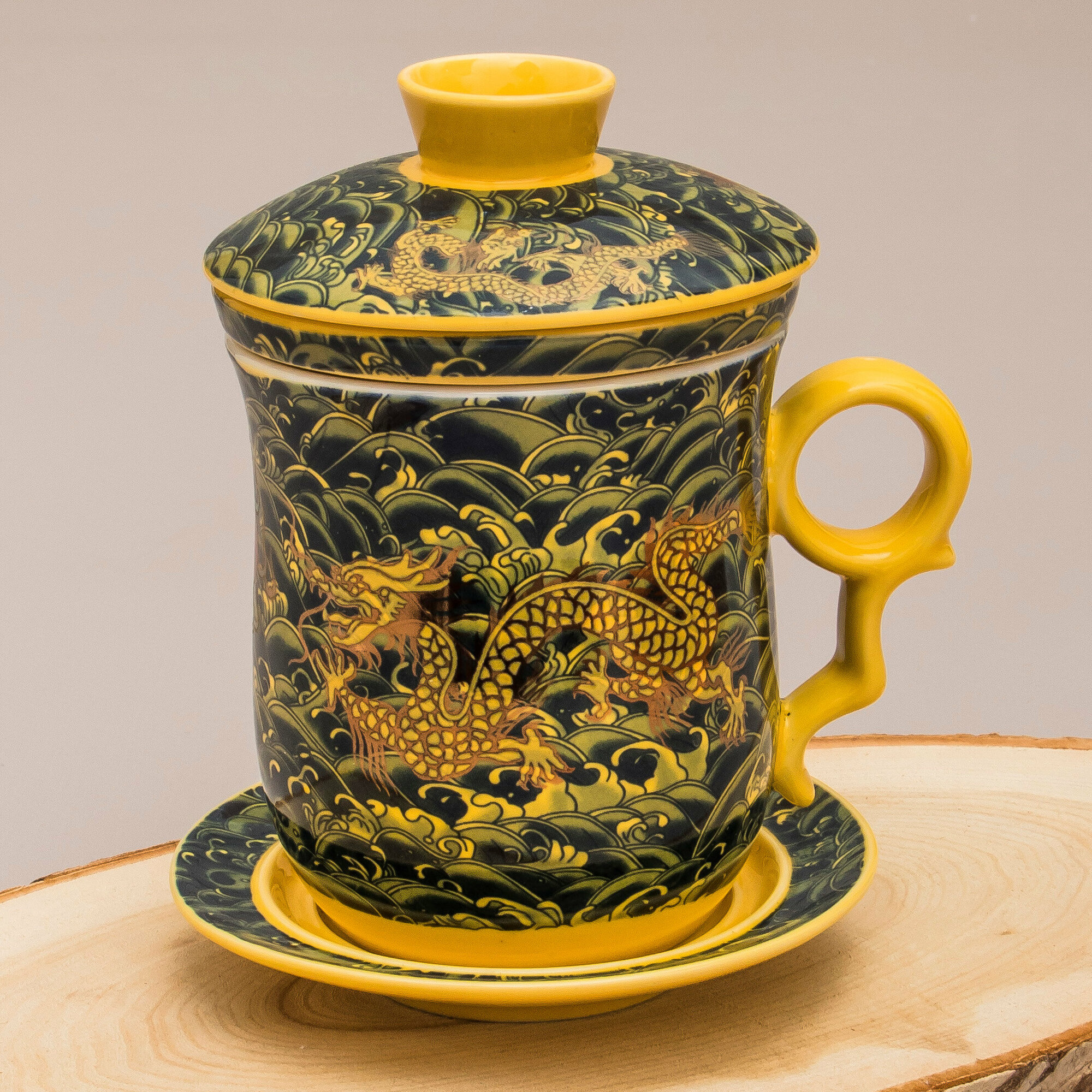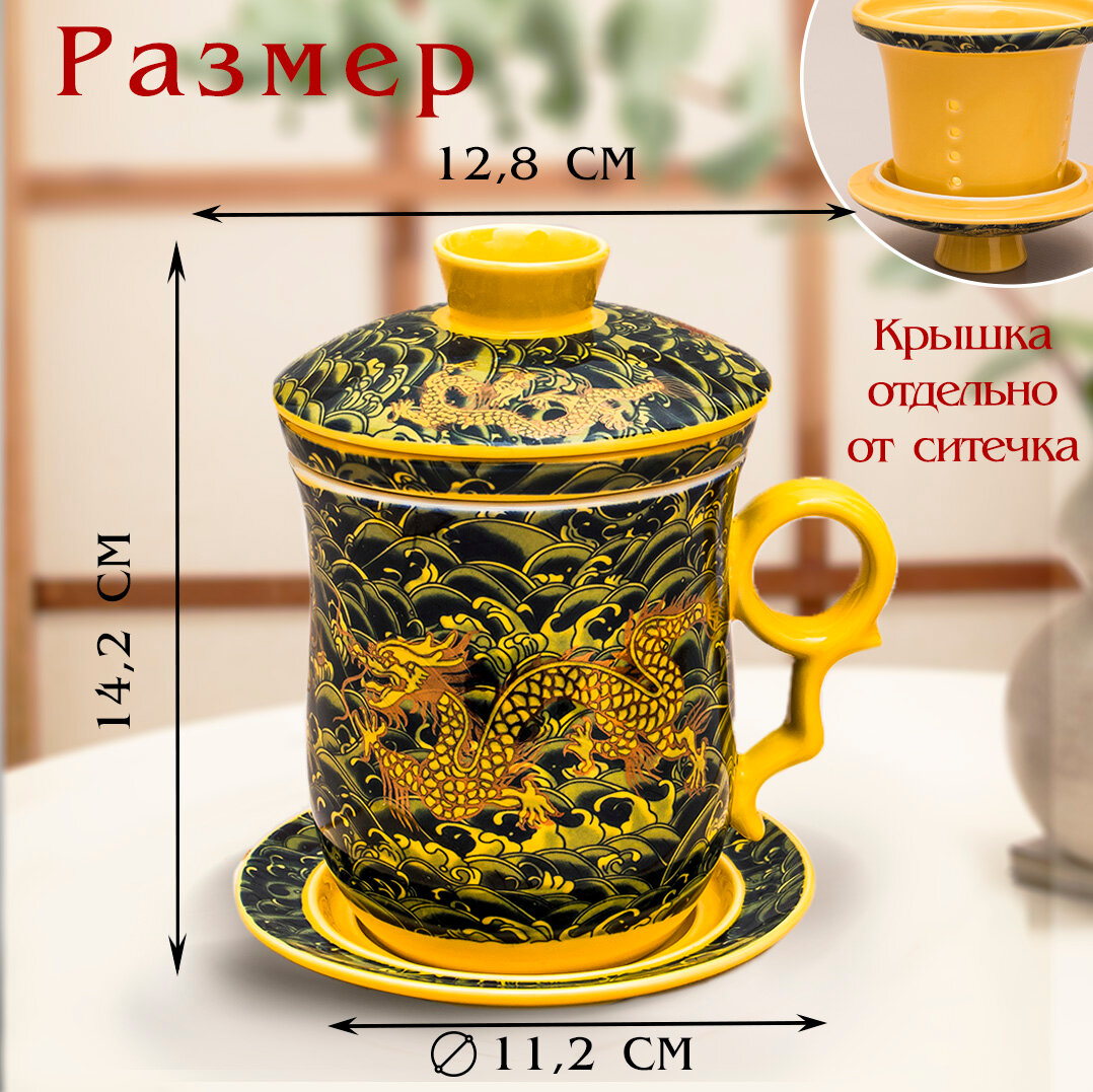 Кружка с ситечком Дракон N 1 (желтый) чашка заварочная 300 мл Эврика, подарочная, символ года, для чайных церемоний 23 февраля, 8 марта 745 ₽
