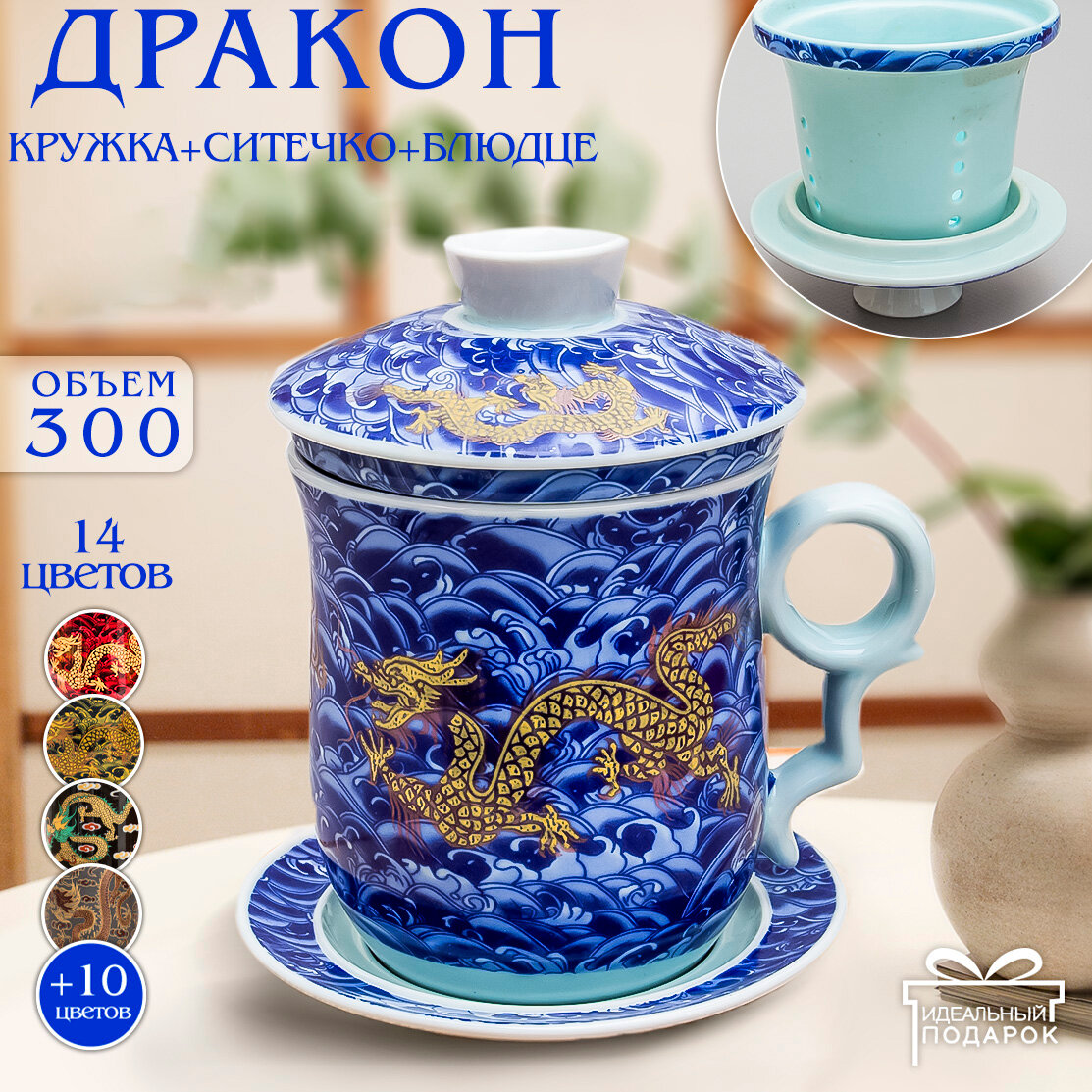 Кружка с ситечком Дракон N 5 (синий) чашка заварочная 300 мл Эврика, подарочная, символ года, для чайных церемоний 23 февраля, 8 марта 745 ₽