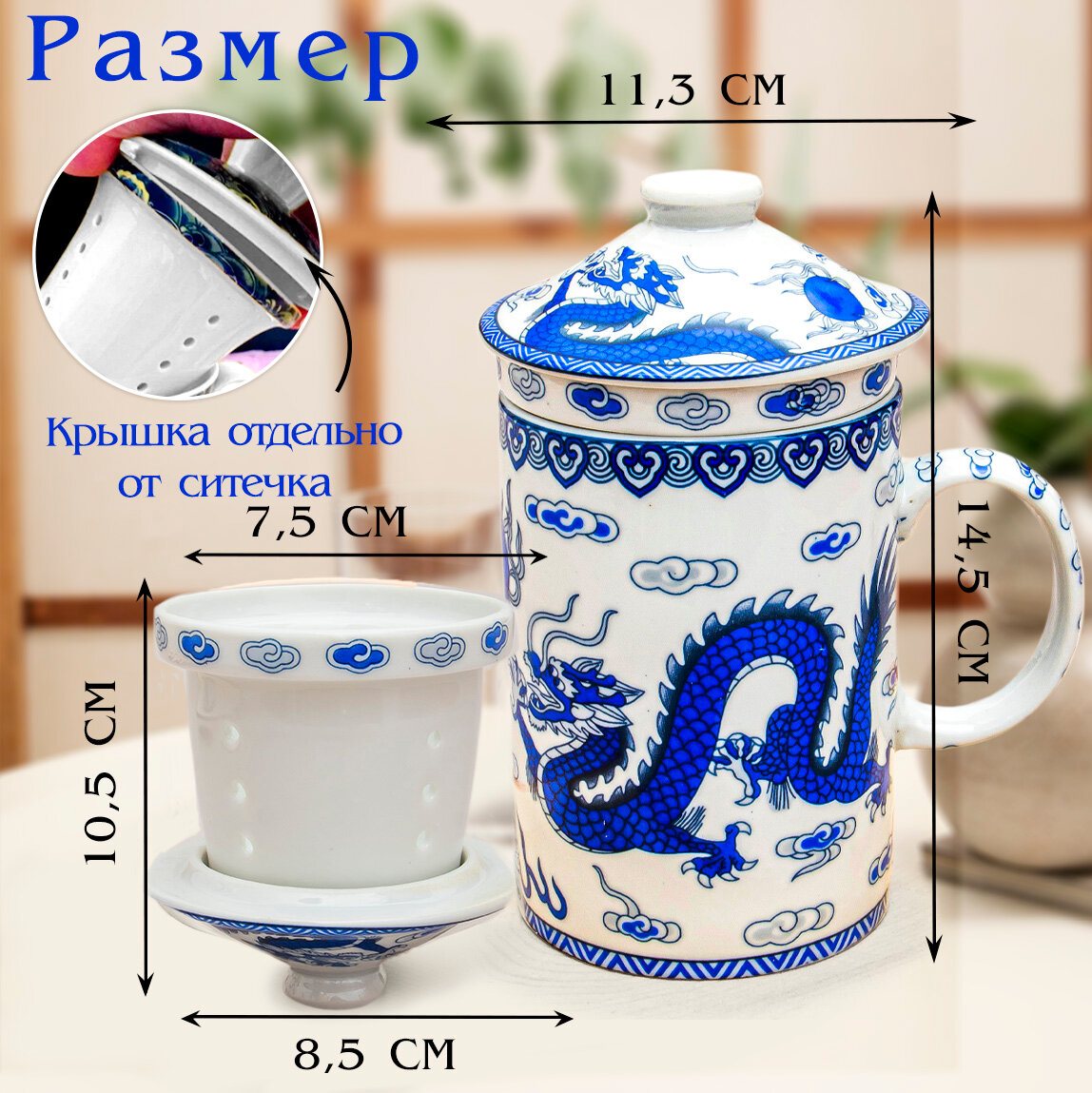 Отзывы на Кружка с ситечком Дракон N 7 (бело-синий) чашка заварочная 300 мл Эврика, подарочная, символ года, для чайных церемоний 23 февраля, 8 марта