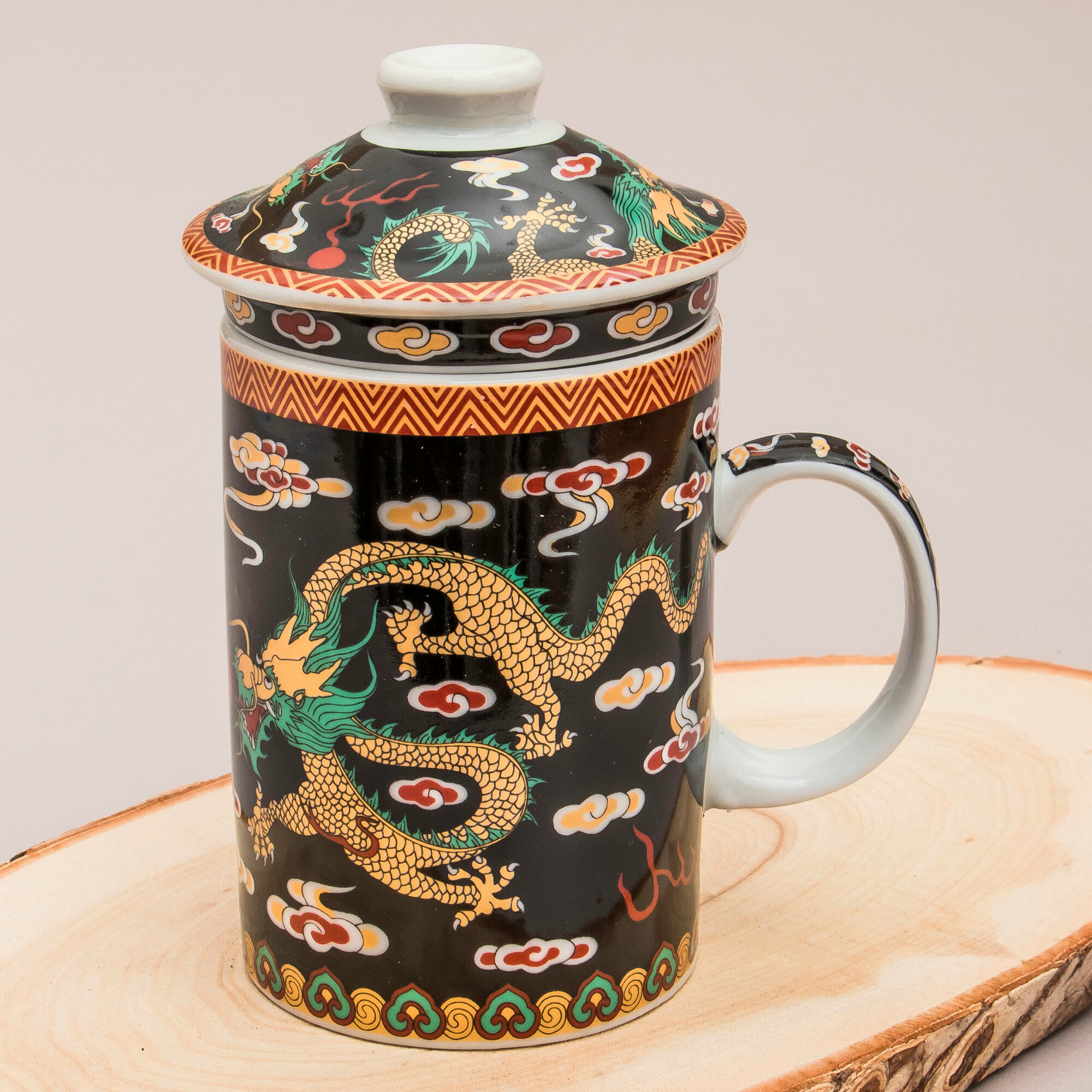 10 цен на Кружка с ситечком Дракон N 6 (черный) чашка заварочная 300 мл Эврика, подарочная, символ года, для чайных церемоний 23 февраля, 8 марта