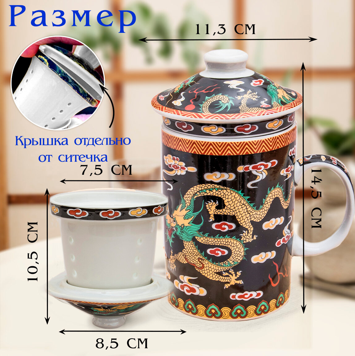 Кружка с ситечком Дракон N 6 (черный) чашка заварочная 300 мл Эврика, подарочная, символ года, для чайных церемоний 23 февраля, 8 марта информация: