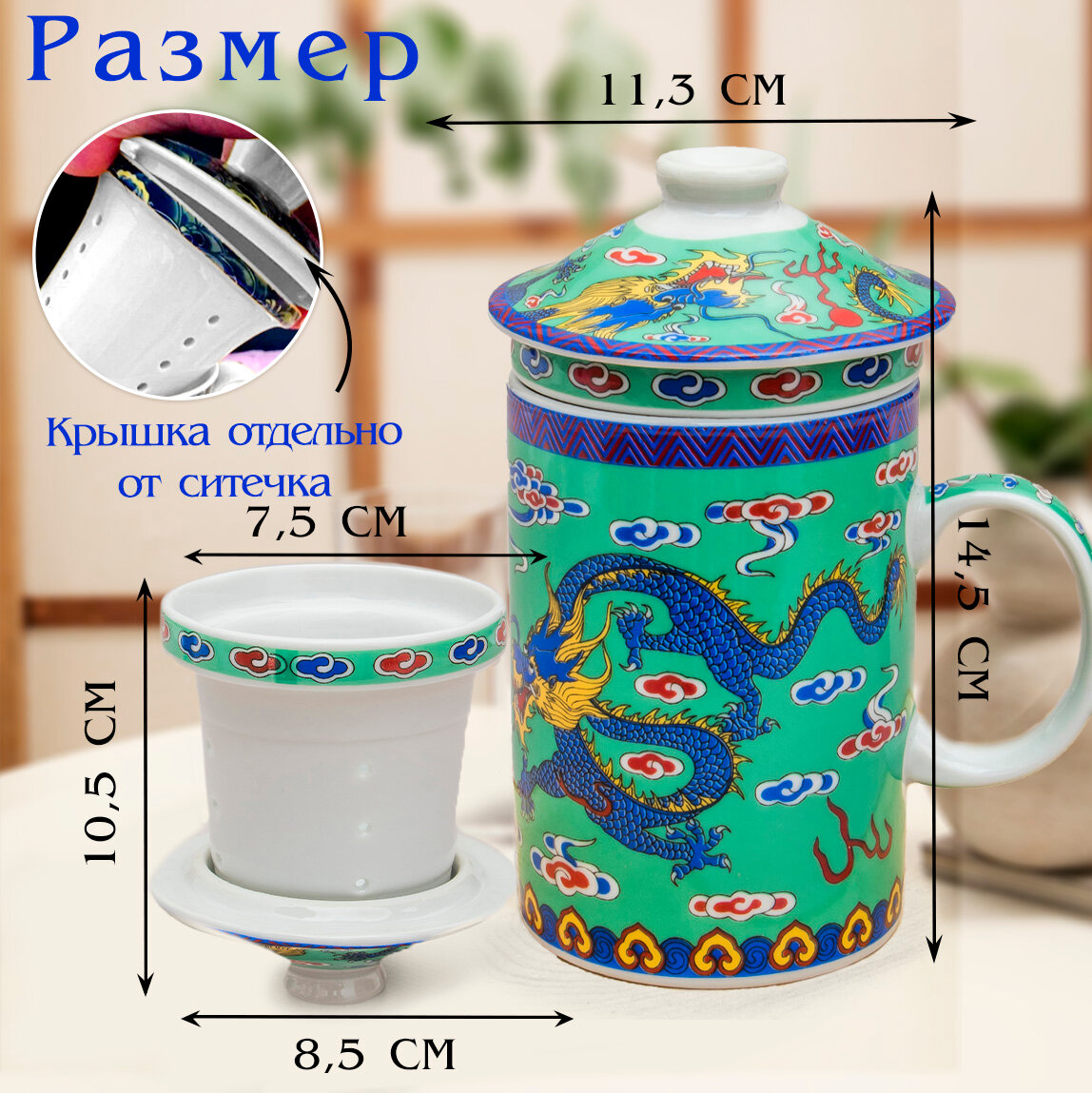 Отзывы на Кружка с ситечком Дракон N 3 (зеленый) чашка заварочная 300 мл Эврика, подарочная, символ года, для чайных церемоний 23 февраля, 8 марта
