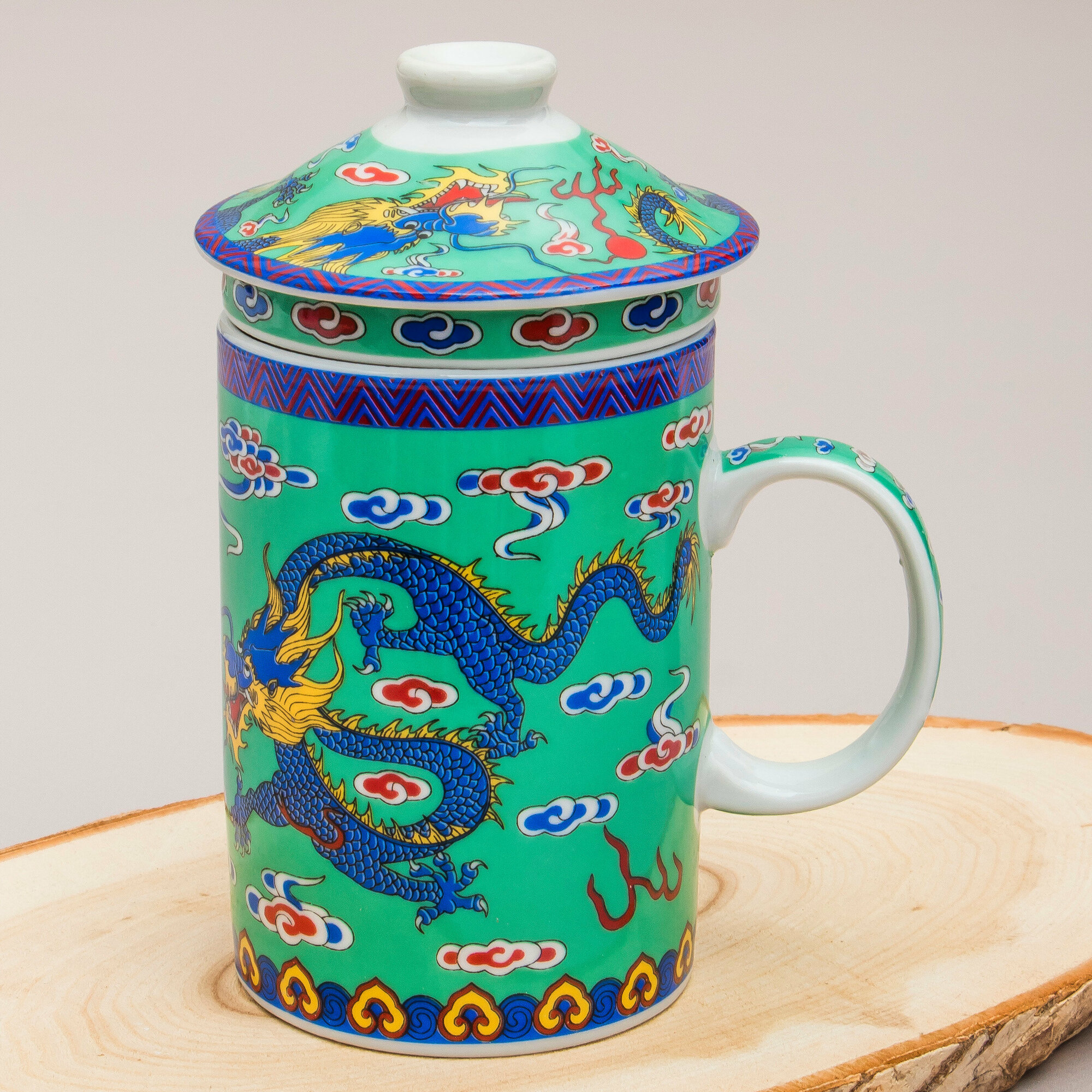 Кружка с ситечком Дракон N 3 (зеленый) чашка заварочная 300 мл Эврика, подарочная, символ года, для чайных церемоний 23 февраля, 8 марта информация: