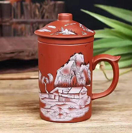 Отзывы на Кружка из глины Китайская мудрость №4 330 мл, чашка заварочная с крышкой и ситечком для чая, мужская, женская подарочная