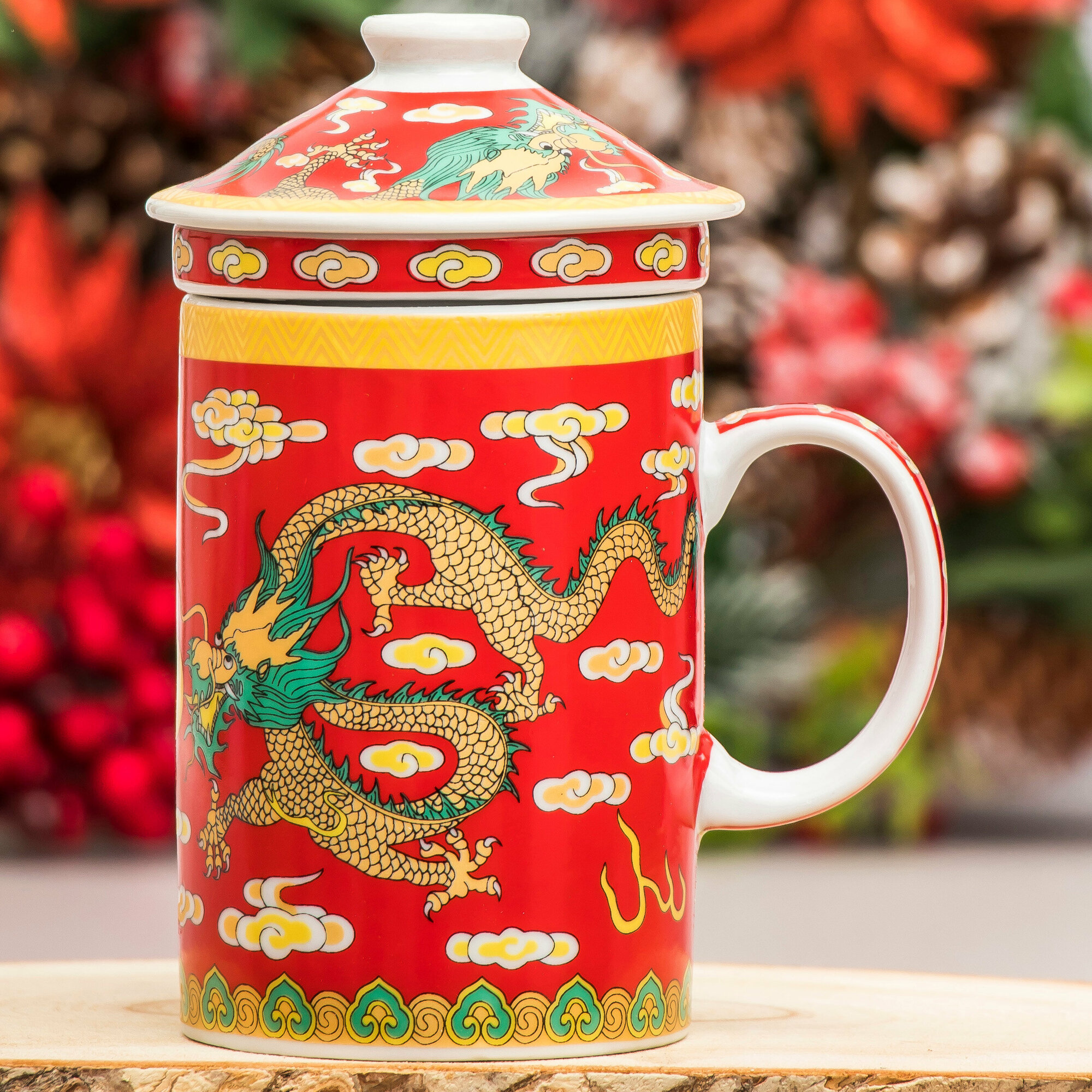 10 цен на Кружка с ситечком Дракон N 2 (красный) чашка заварочная 300 мл Эврика, подарочная, символ года, для чайных церемоний 23 февраля, 8 марта