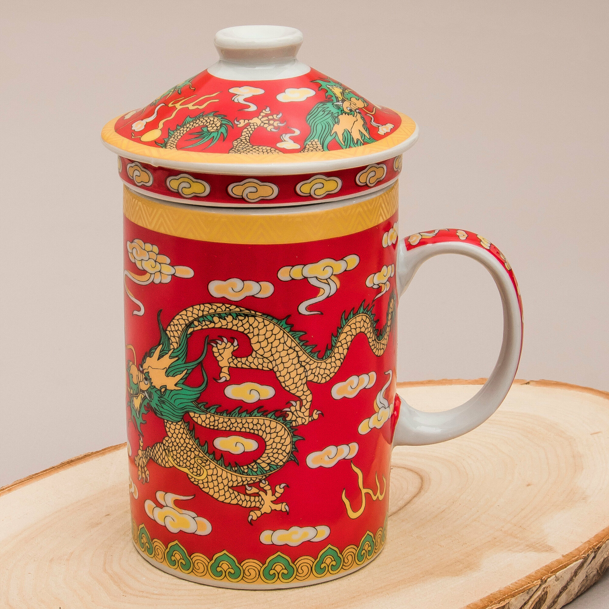 Кружка с ситечком Дракон N 2 (красный) чашка заварочная 300 мл Эврика, подарочная, символ года, для чайных церемоний 23 февраля, 8 марта информация: