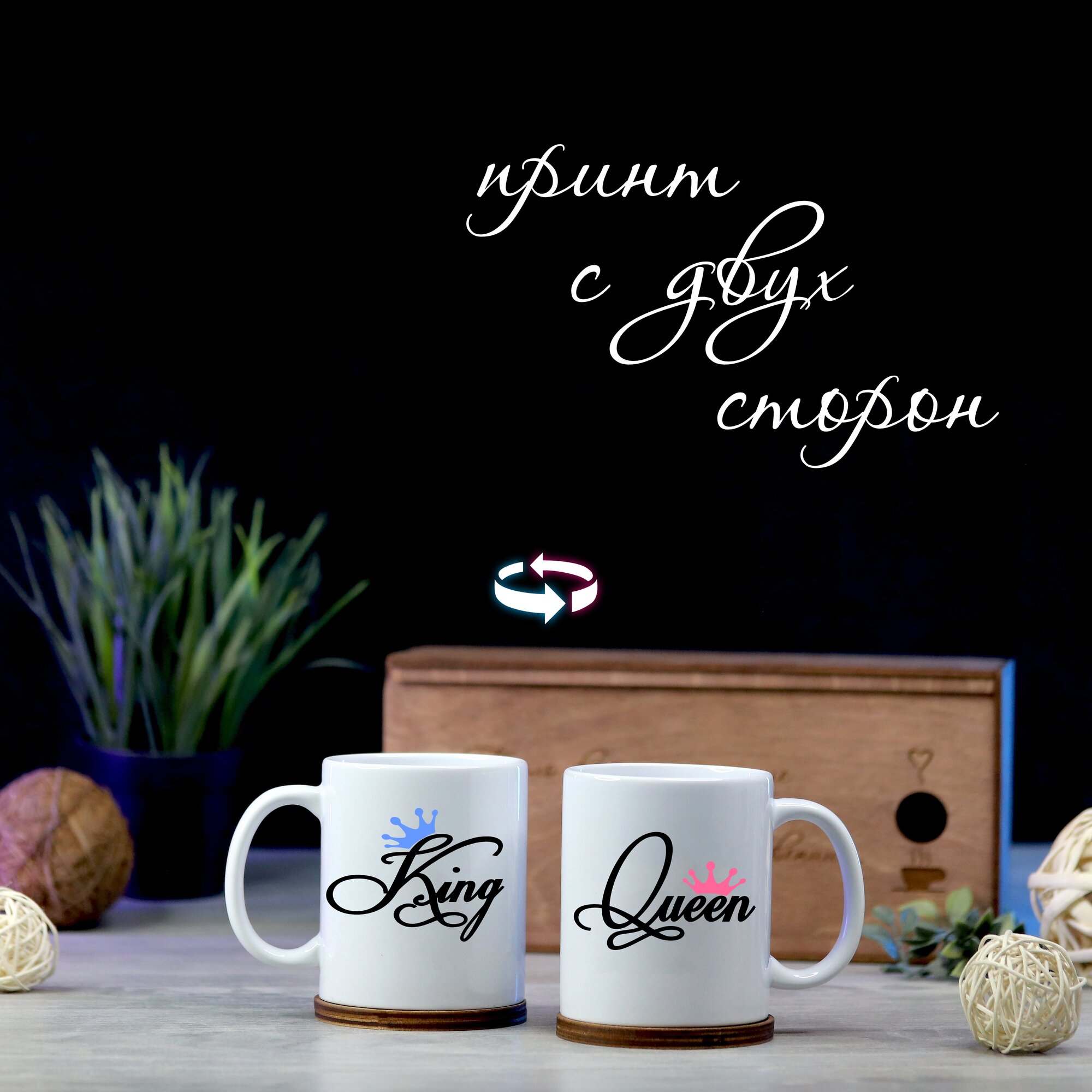 Парные керамические кружки king queen в подарочной коробке информация: