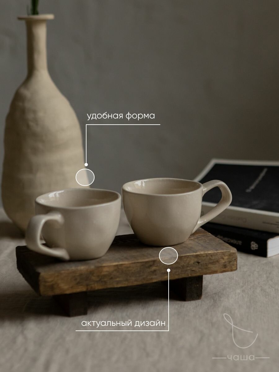 Набор керамических чашек Chasha, использование в СВЧ и мытье в посудомойке, 300мл, 2шт 1 400 ₽