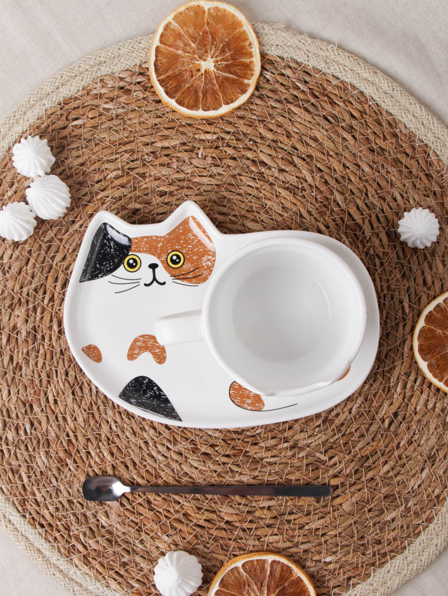 10 цен на Чайный пара подарочная "Котик" 200 мл с ложкой, оригинальная форма