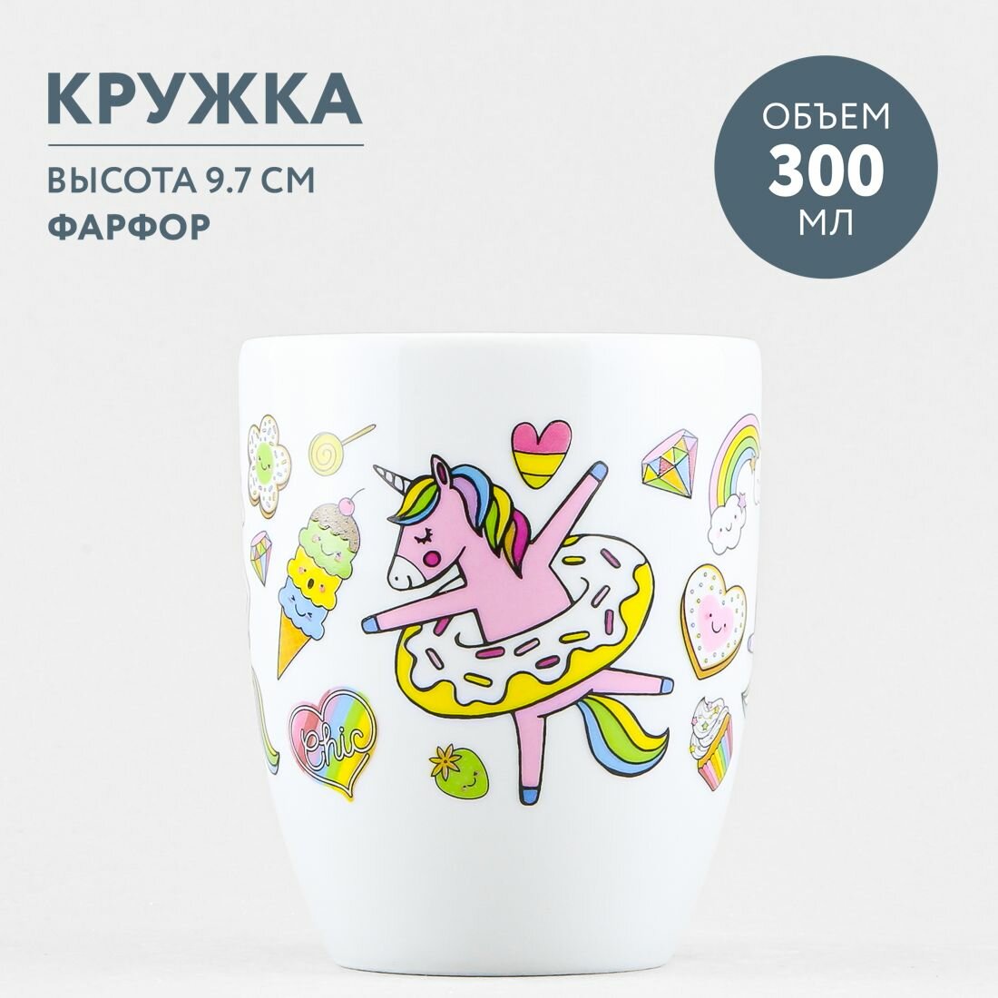 Кружка для чая и кофе фарфоровая 300 мл Добрушский фарфор Единорожки информация: