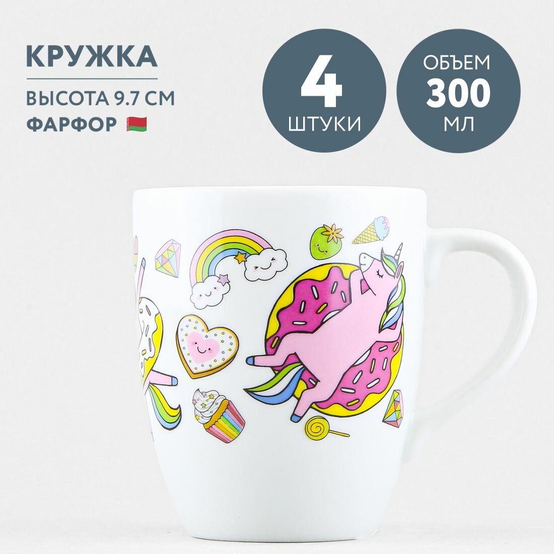 Набор из 4 кружек для чая и кофе 300 мл Добрушский фарфор Единорожки информация: