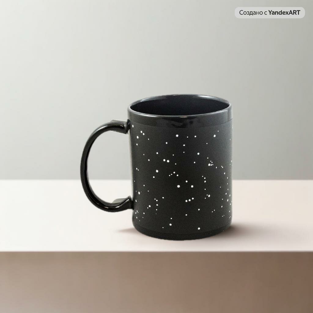 Кружка хамелеон Разогрей Созвездия 300 мл, черная, чашка для чая, меняет цвет, рисунок, мужская подарочная на 23 февраля