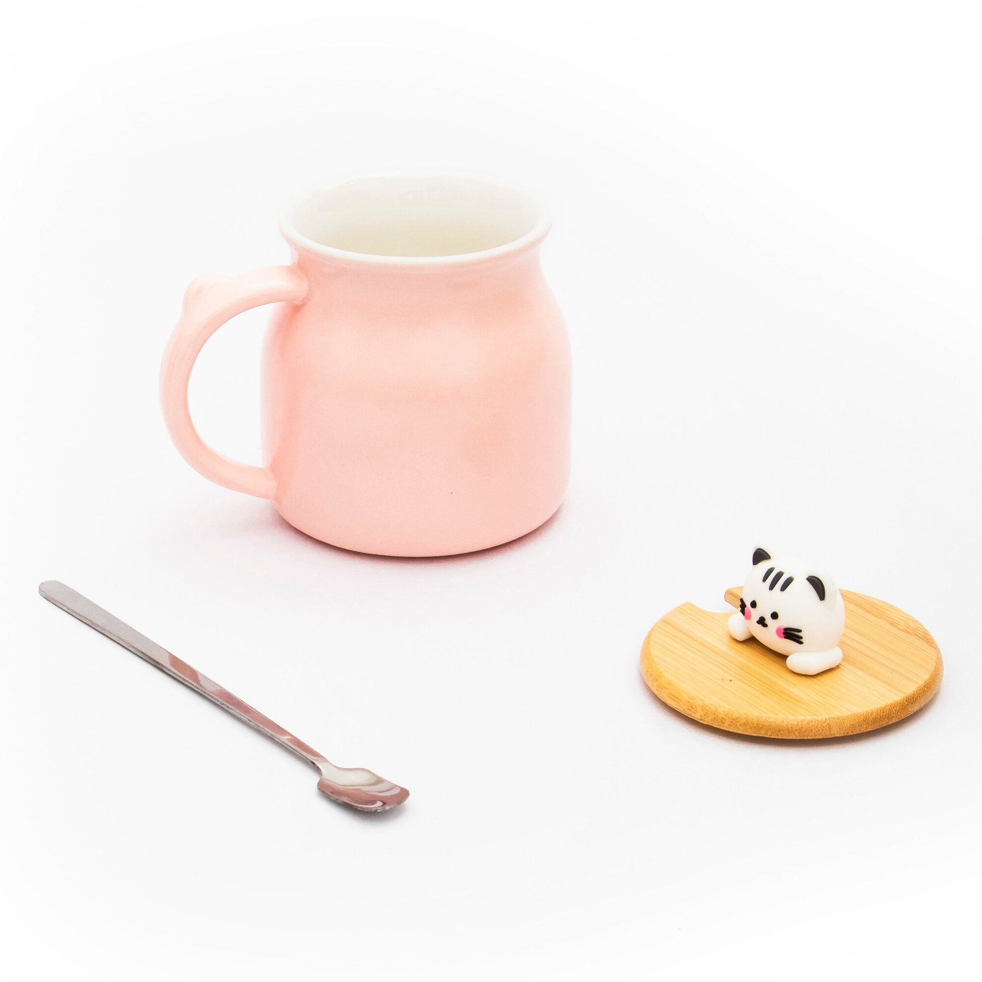 Отзывы на Кружка Милые котики на крышке Love Cats 340 мл, розовая, с ложкой, для чая и кофе, женская, подарочная