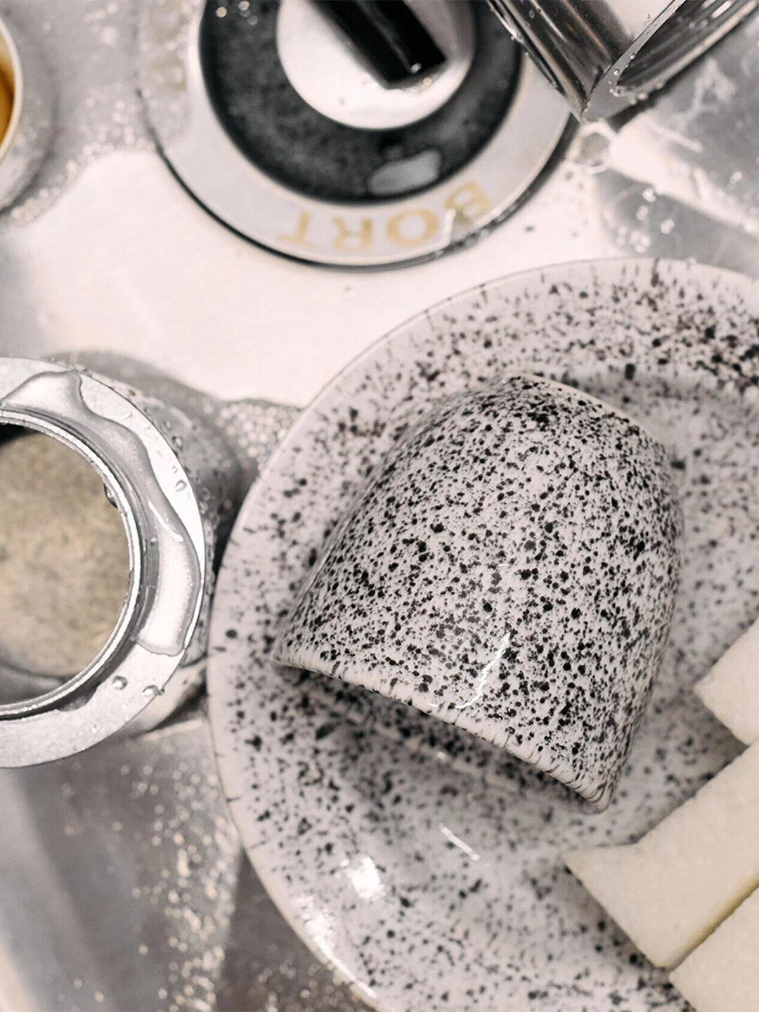 Отзывы на Чашка DVKB "Мальмо латте", керамика, 240мл, белая в черную крапинку, без ручки