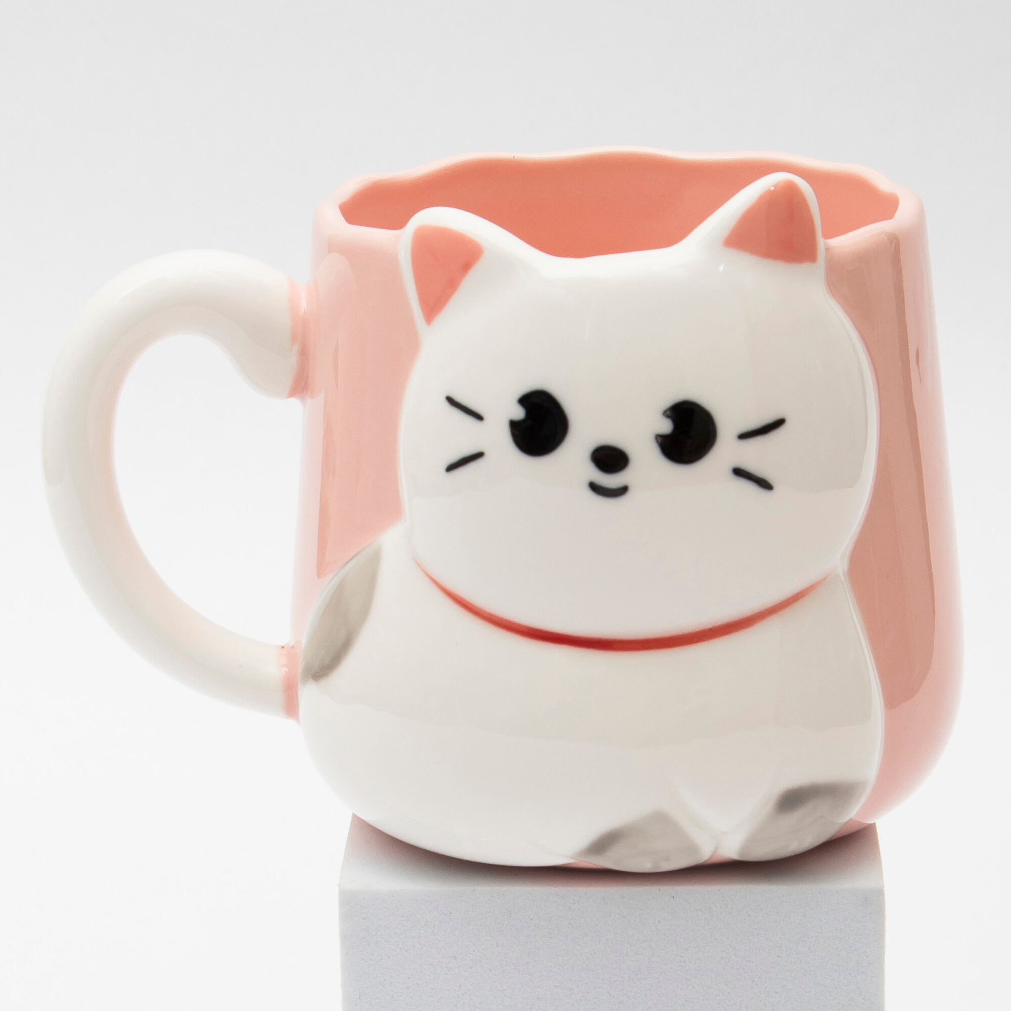 10 цен на Кружка керамическая "Белый котик" 500 мл розовая, для чая/кофе, подарочная
