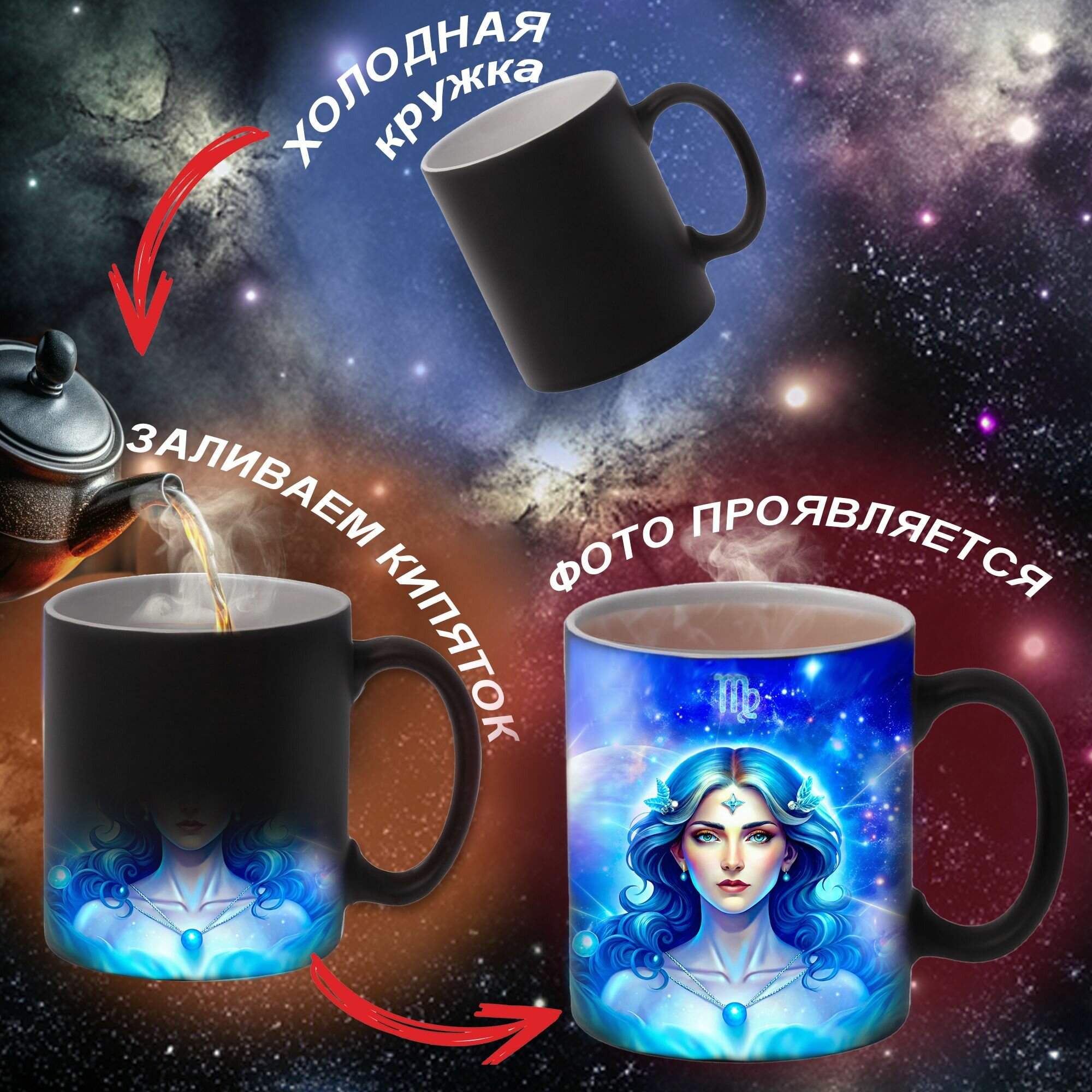 Отзывы на Кружка меняющая цвет от температуры со знаком зодиака Дева / кружка хамелеон / 330 мл, 1 шт