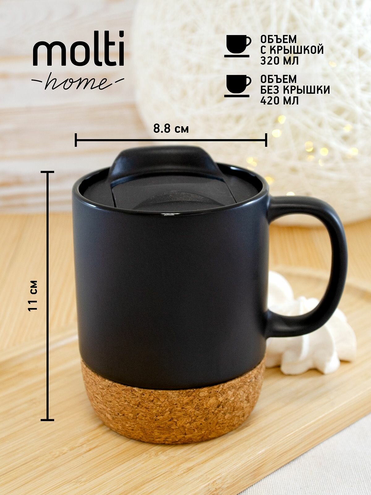 Кружка для чая и кофе molti Corky Walk чашка подарочная с подставкой и крышкой 320 мл, черная информация: