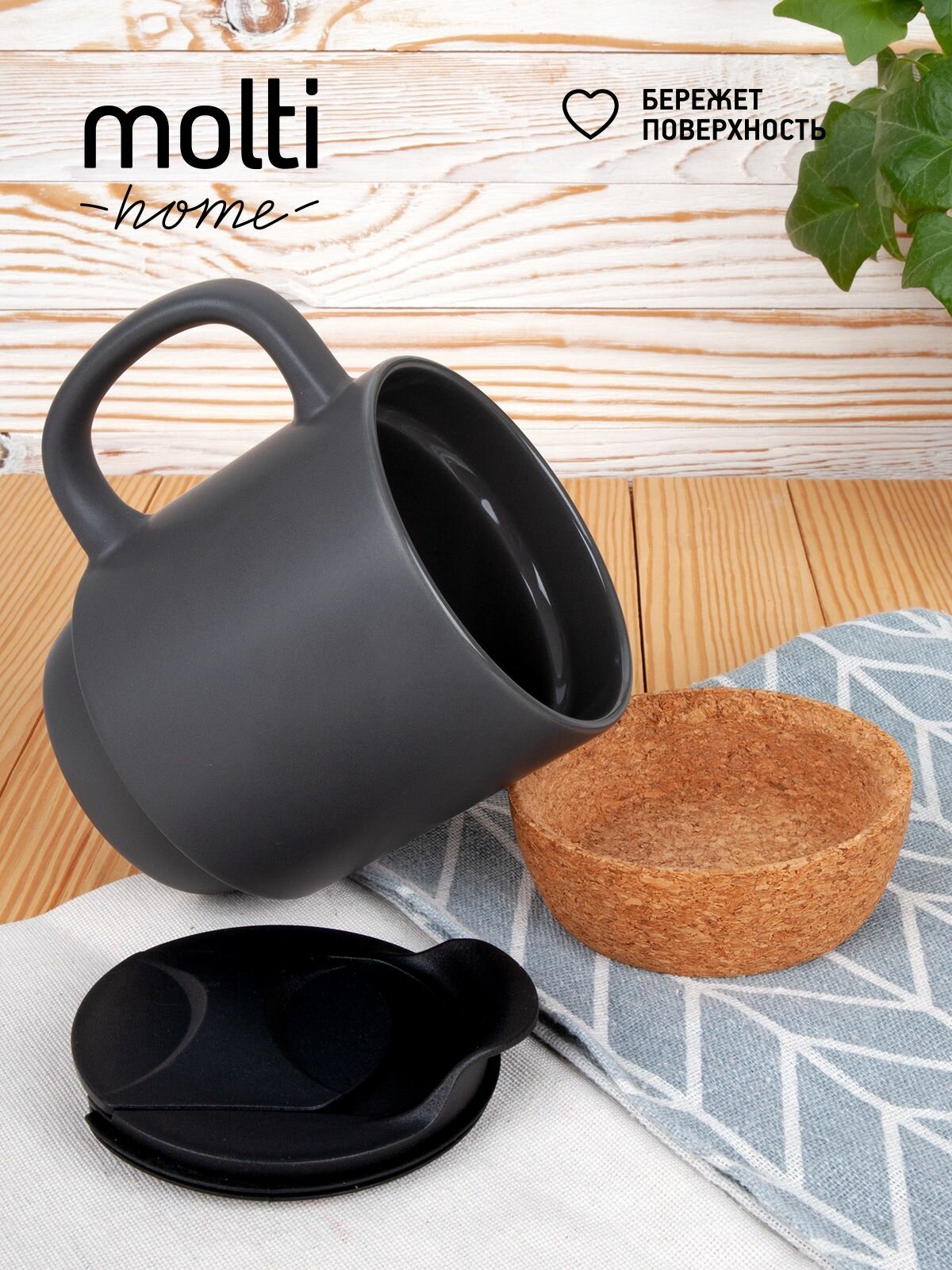Кружка для чая и кофе molti Corky Walk чашка подарочная с подставкой и крышкой 320 мл, черная 1 036 ₽