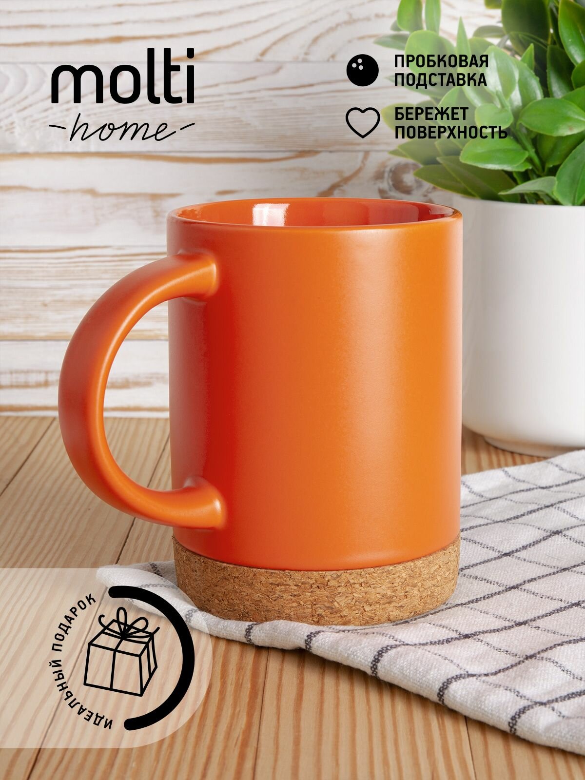 Кружка матовая для чая и кофе molti Corky чашка подарочная с подставкой из пробки 450 мл, оранжевая информация: