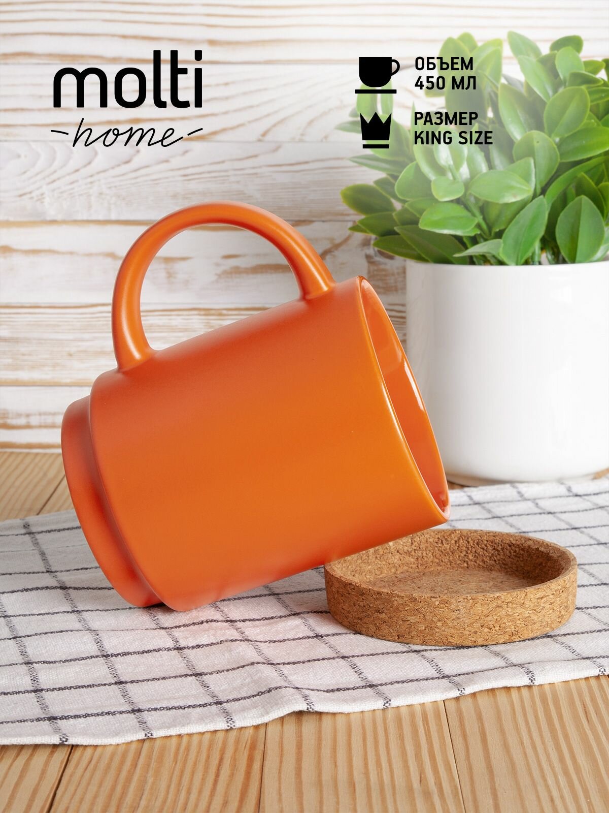 10 цен на Кружка матовая для чая и кофе molti Corky чашка подарочная с подставкой из пробки 450 мл, оранжевая