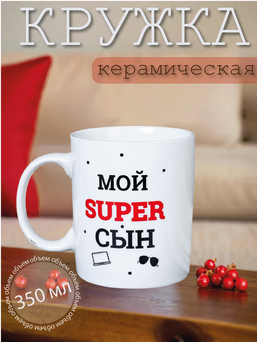 Кружка для чая и кофе с надписью "Мой SUPER сын", 350 мл, керамика информация: