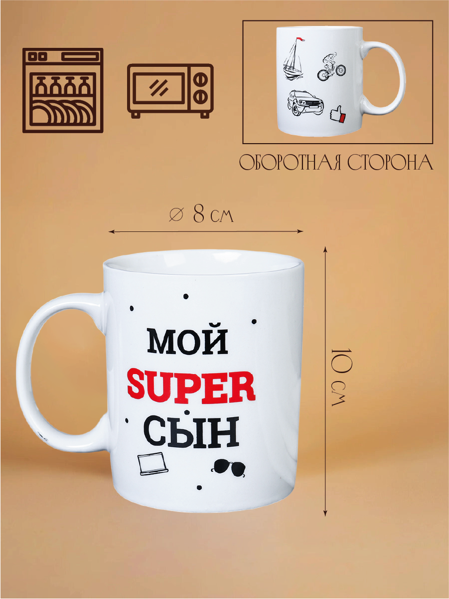 10 цен на Кружка для чая и кофе с надписью "Мой SUPER сын", 350 мл, керамика
