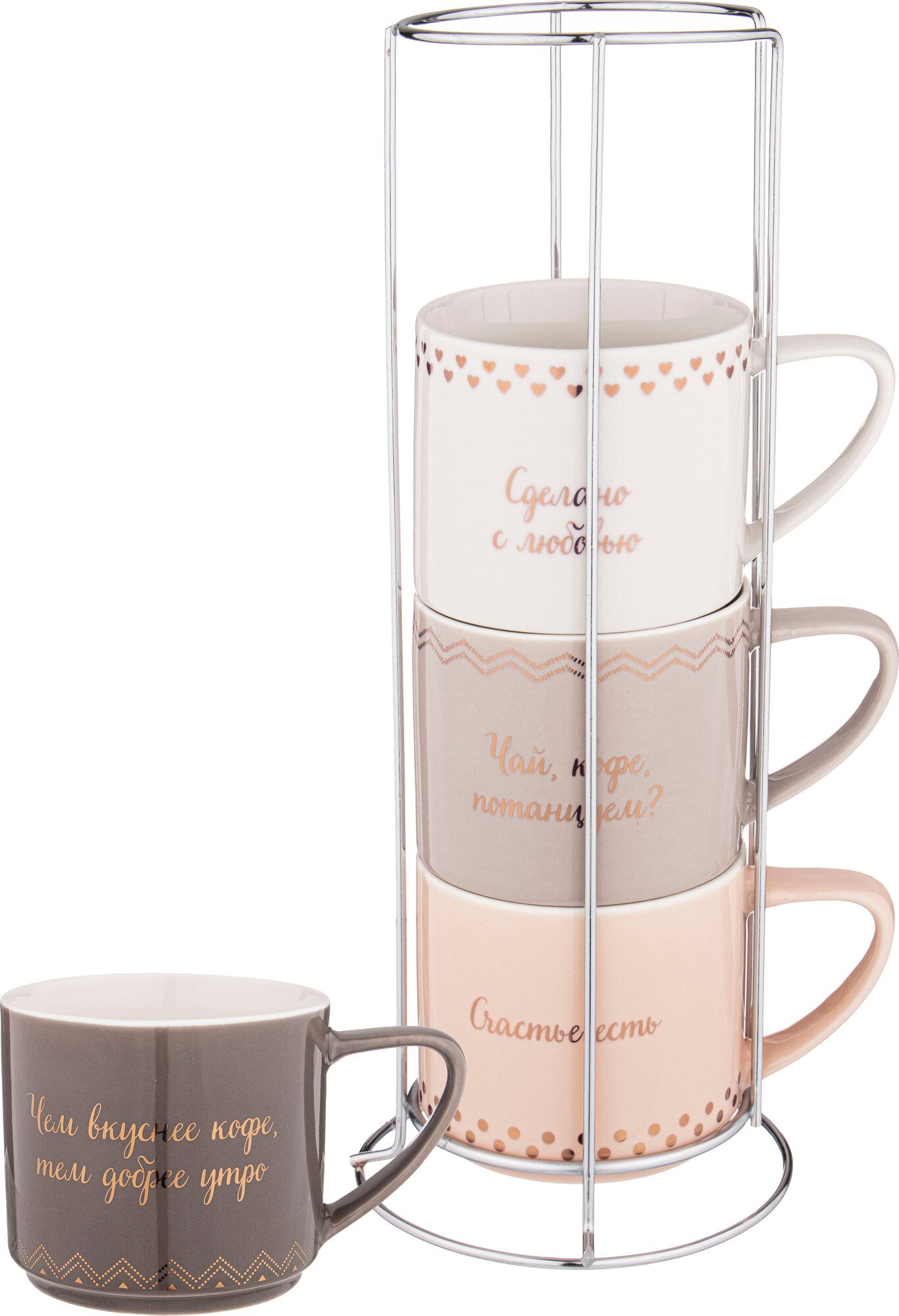 10 цен на Кружки Lefard "Modern Lines", набор 4 шт, 370 мл, фарфоровые, с металлической подставкой