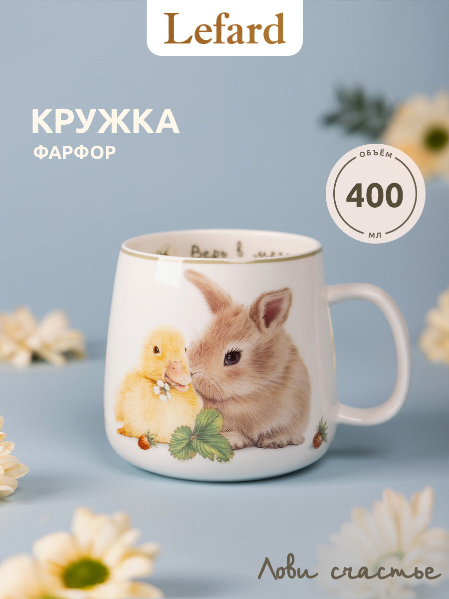 Кружка Lefard "Лови счастье" 400 мл, для чая и кофе, фарфоровая информация:
