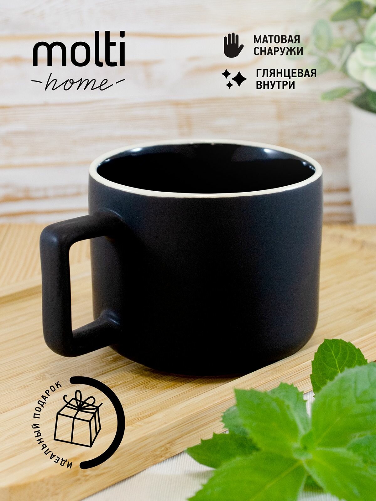 Кружка для чая и кофе матовая molti Fusion чашка подарочная для мужчины папе большая фарфоровая 400 мл, черная информация: