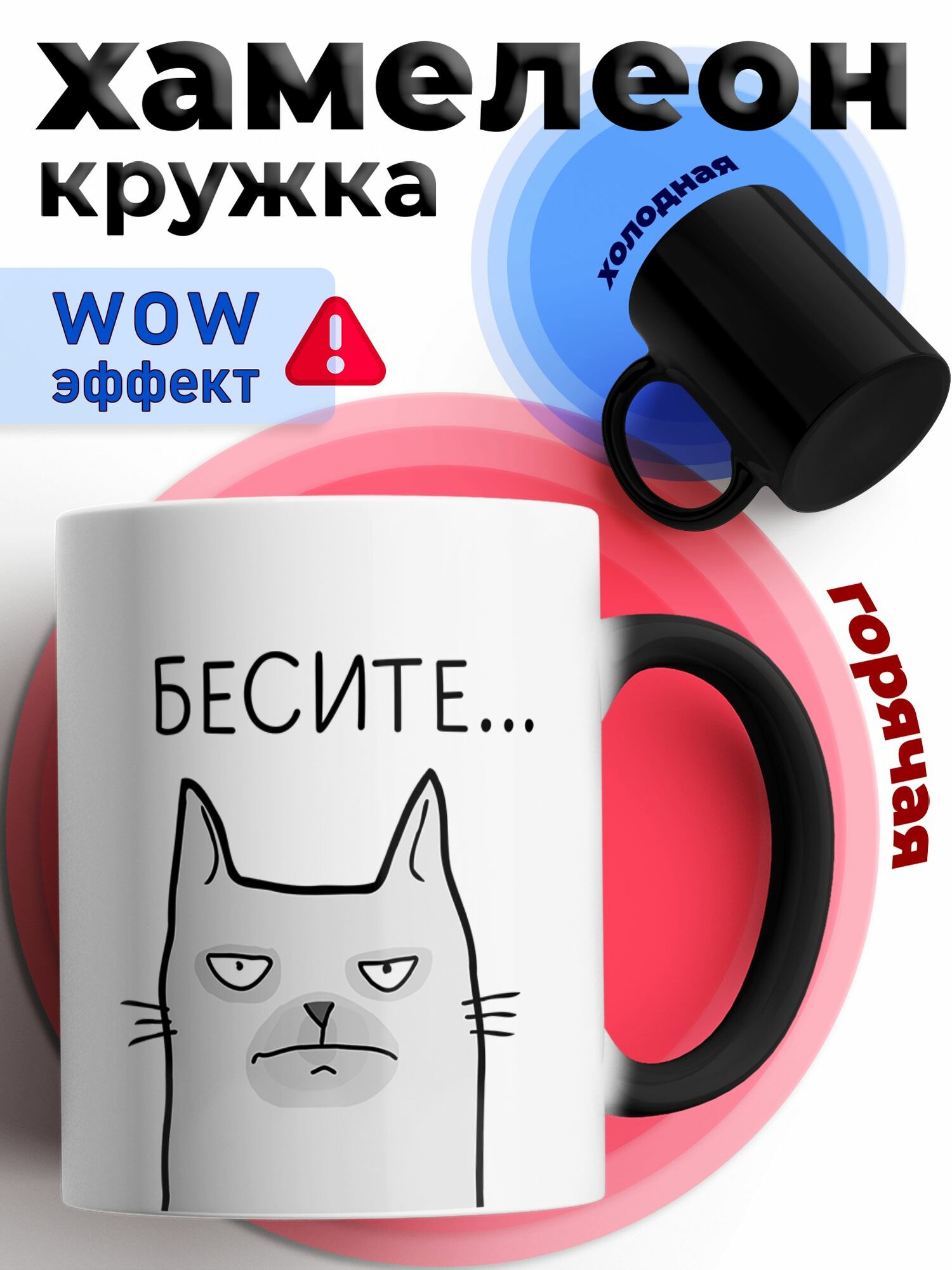 Кружка хамелеон для чая и кофе подарок с приколом, принтом и надписью "Бесите" информация: