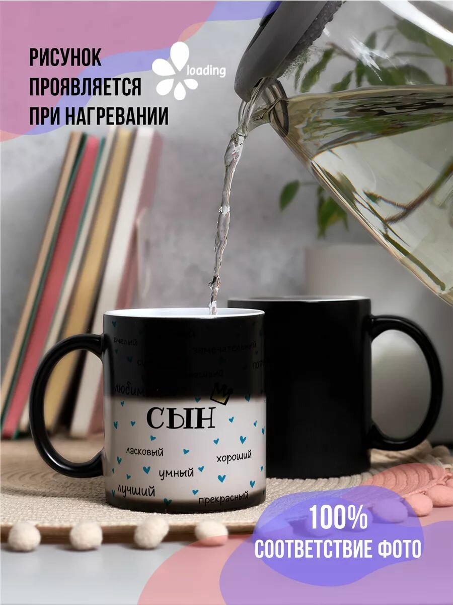 Кружка керамическая с приколом подарок сыну на день рождения с оживающим принтом "Комплименты сыну" 549 ₽