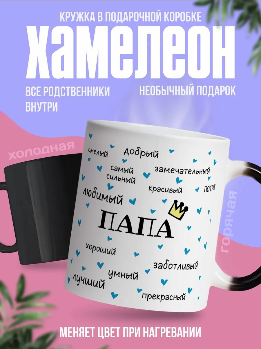 Отзывы на Кружка хамелеон с приколом подарок папе на день рождения с принтом "Комплименты папе"