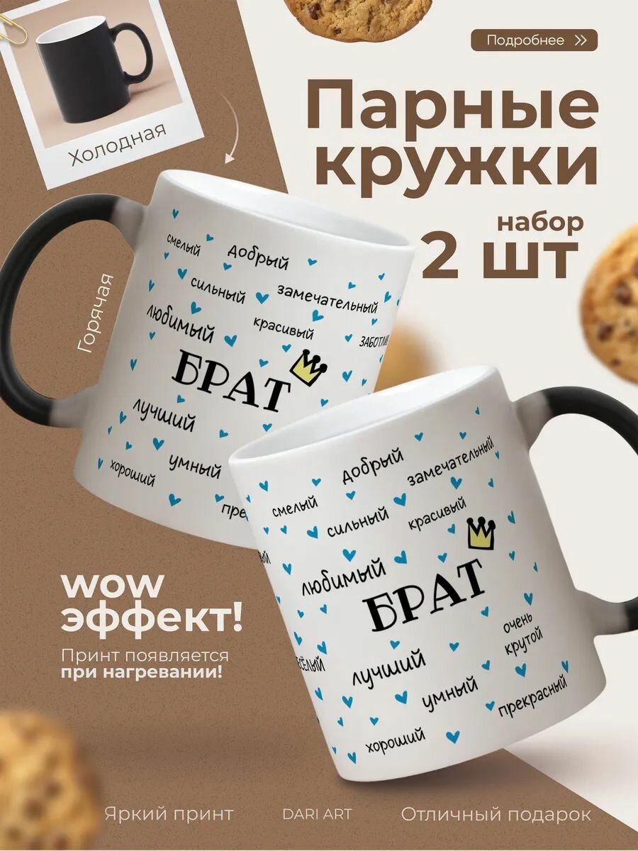 Отзывы на Набор кружек хамелеон с приколом подарок брату на день рождения с принтом "Комплименты"