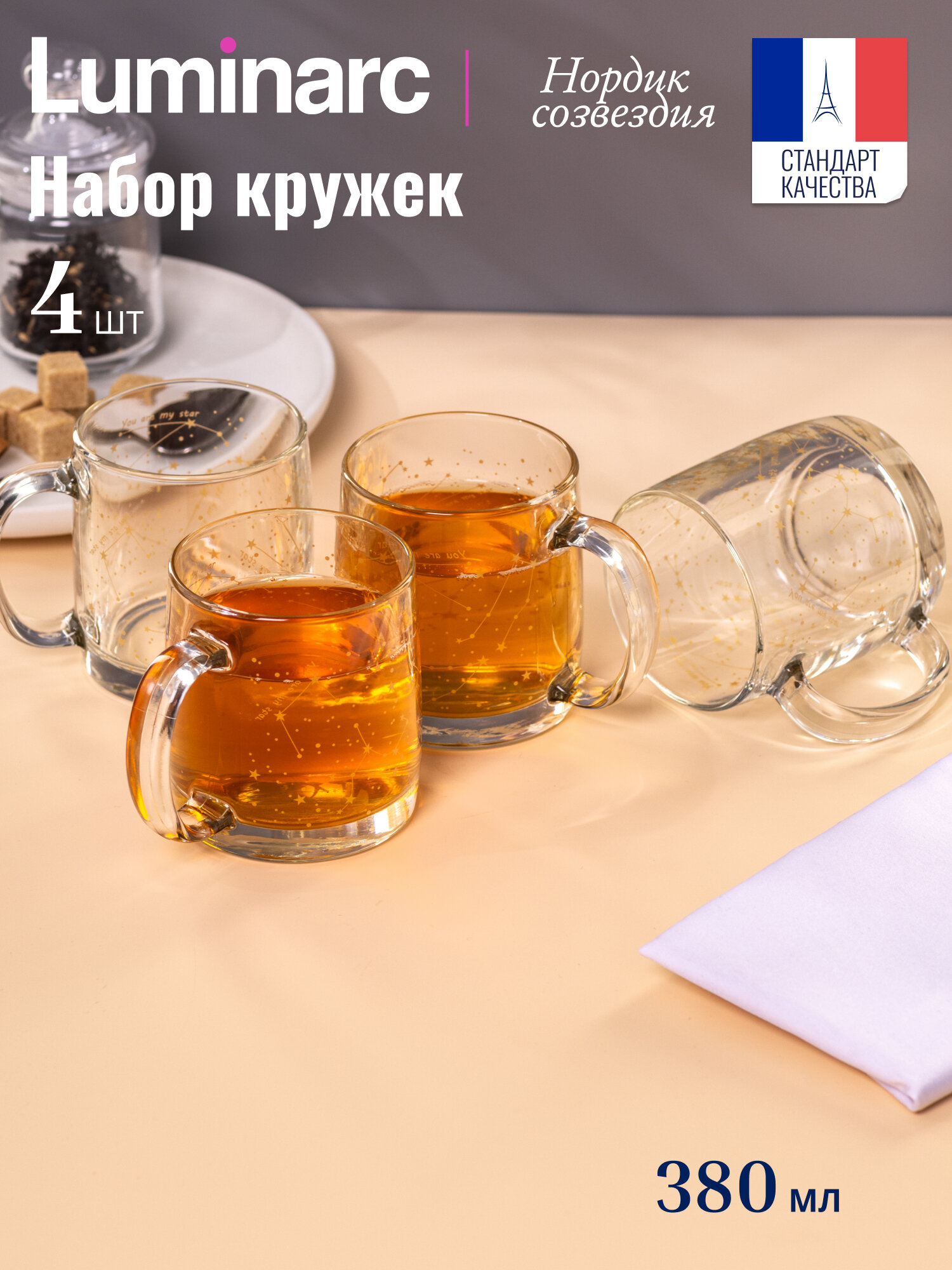 Кружка стеклянная для кофе и чая НОРДИК СОЗВЕЗДИЯ 380мл, набор 4 штуки информация: