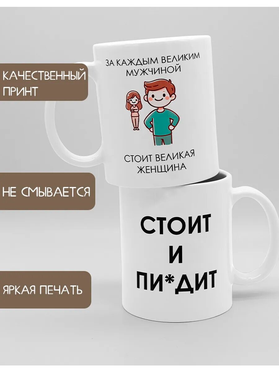 Отзывы на Кружка CupLuv "За каждым великим мужчиной", для кофе, керамика, серебристая, 330 мл