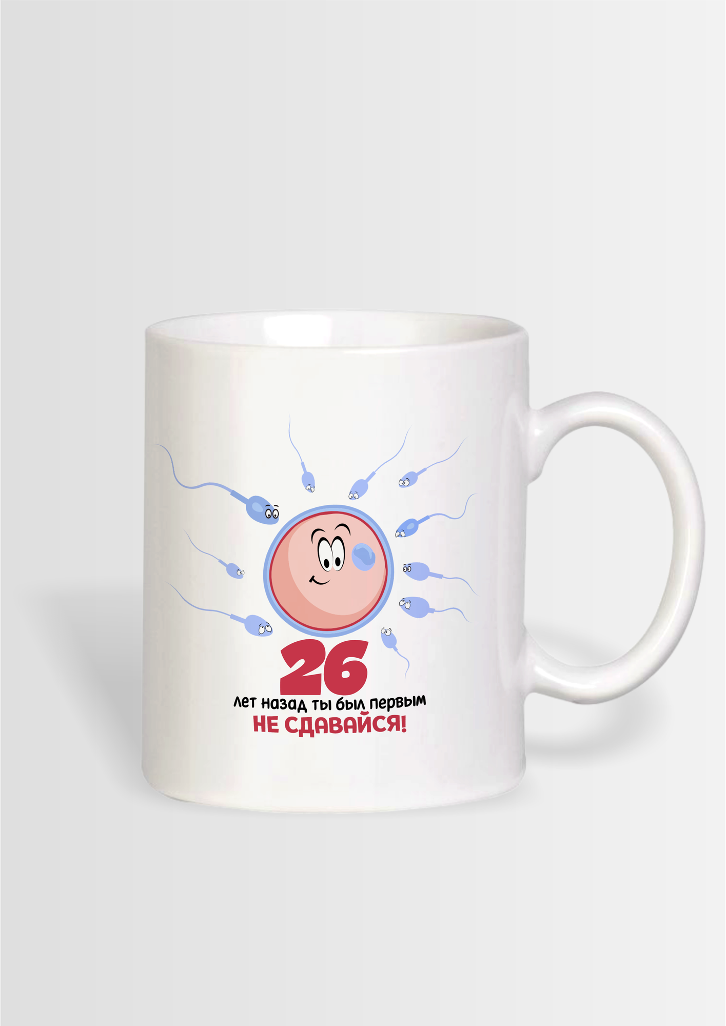 Белая подарочная кружка из керамики с приколом и мемом на День Рождения 26 лет "26 лет назад ты был первым" от Mug IrbisPrint, для чая и кофе, 330 мл информация: