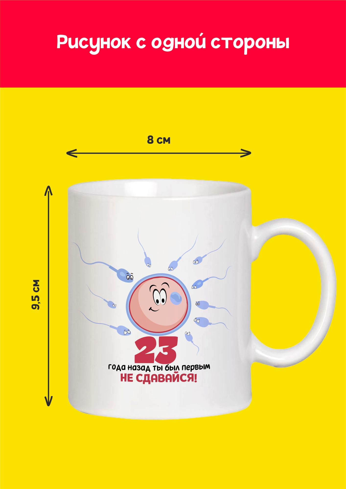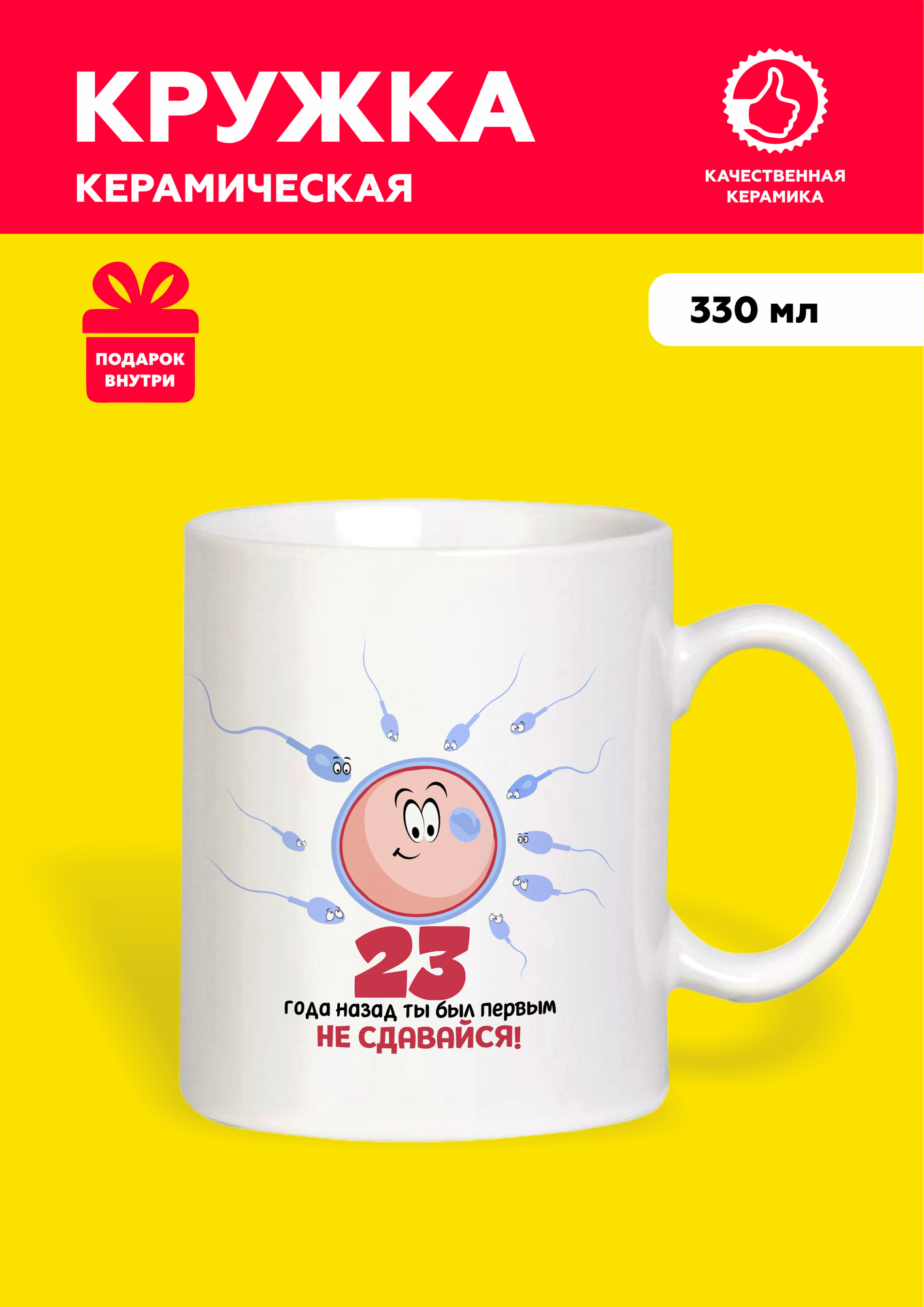 Белая подарочная кружка из керамики с приколом и мемом на День Рождения 23 года "23 года назад ты был первым" от Mug IrbisPrint, для чая и кофе, 330 мл информация: