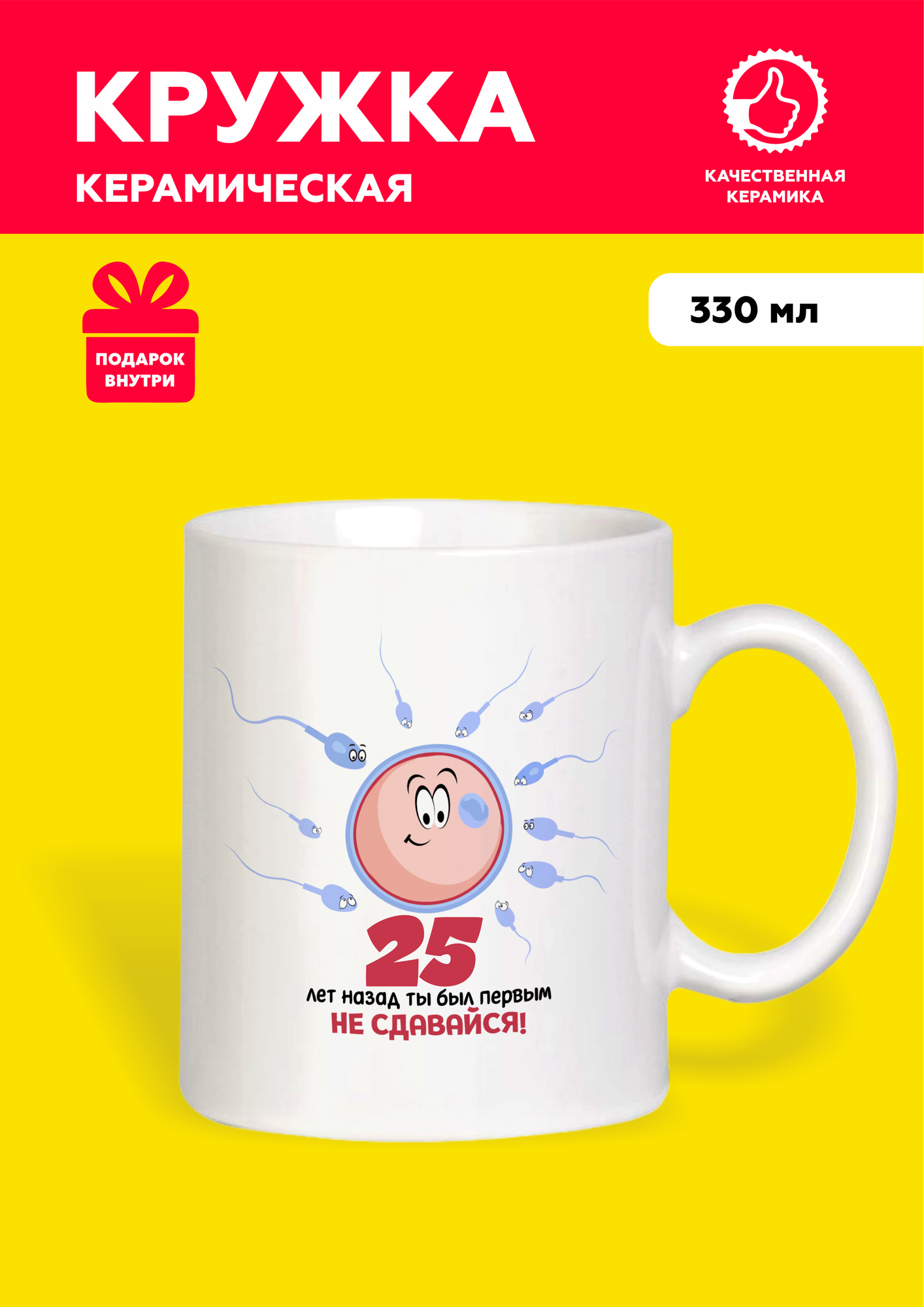 Белая подарочная кружка из керамики с приколом и мемом на День Рождения 25 лет "25 лет назад ты был первым" от Mug IrbisPrint, для чая и кофе, 330 мл информация: