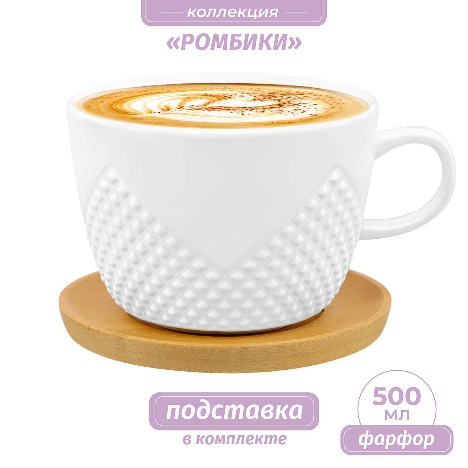 10 цен на Чашка / кружка для капучино и кофе латте 500 мл 14,5х12,8х9 см Elan Gallery Ромбики на деревянной подставке